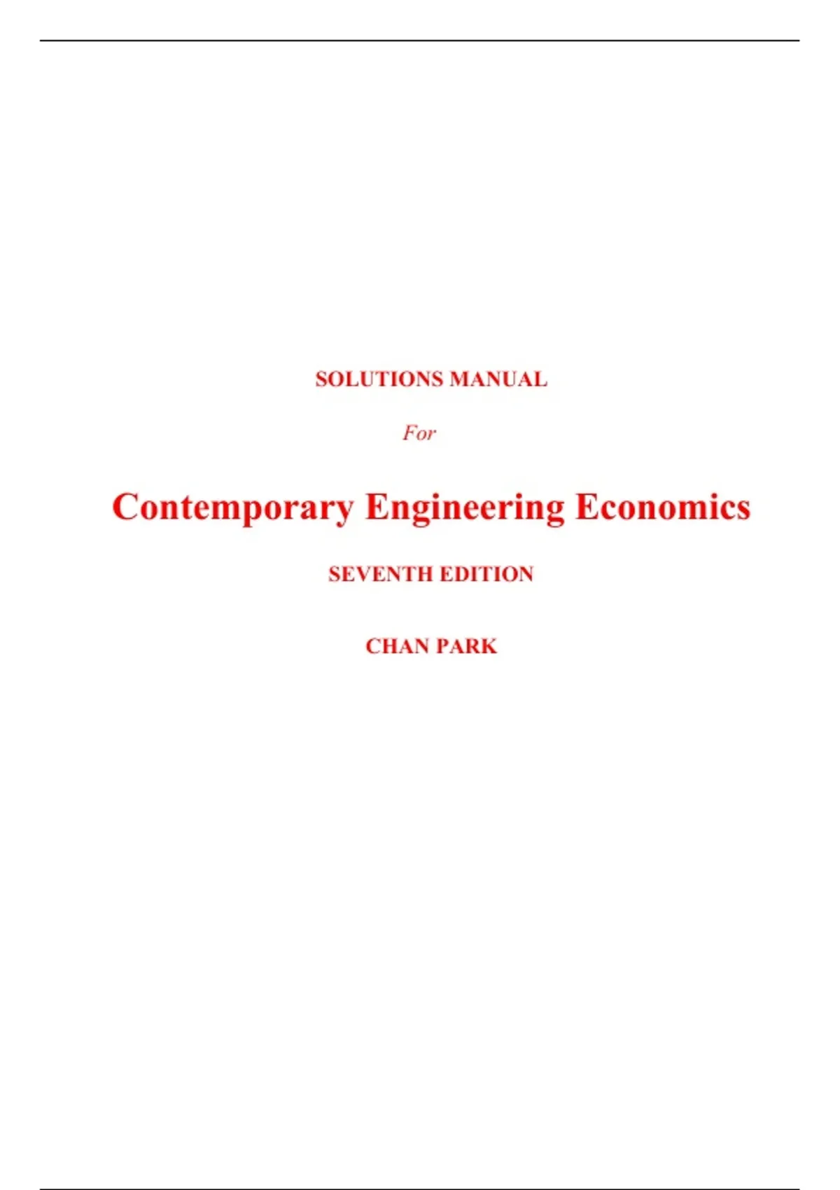 This comprehensive solutions manual accompanies the seventh edition of Contemporary Engineering Economics by Chan S. Park, providing fully worked-out solutions to all end-of-chapter problems. Designed for engineering students and professionals, it covers key topics in engineering economic analysis, including time value of money, cost estimation, cash flow analysis, rate of return, project evaluation, depreciation, inflation, risk analysis, and capital budgeting. Each solution offers step-by-step explanations, mathematical derivations, and practical applications to reinforce concepts like net present value (NPV), internal rate of return (IRR), and benefit-cost analysis. Compiled from verified 2025 publisher resources and aligned with the textbook’s focus on real-world engineering decision-making, this manual is ideal for exam preparation, homework assistance, or self-study in undergraduate and graduate engineering economics courses.