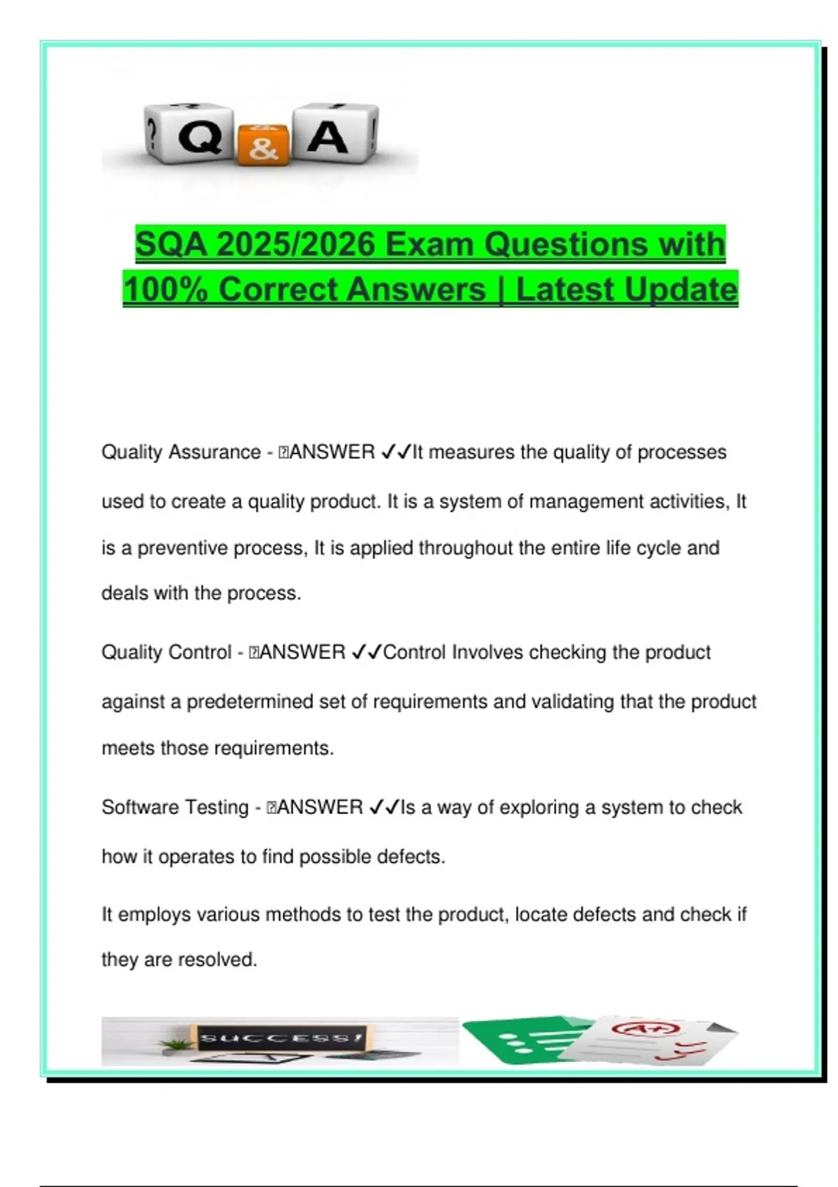 ,Software Quality Assurance - 🧠ANSWER ✔✔Is a set of methods and