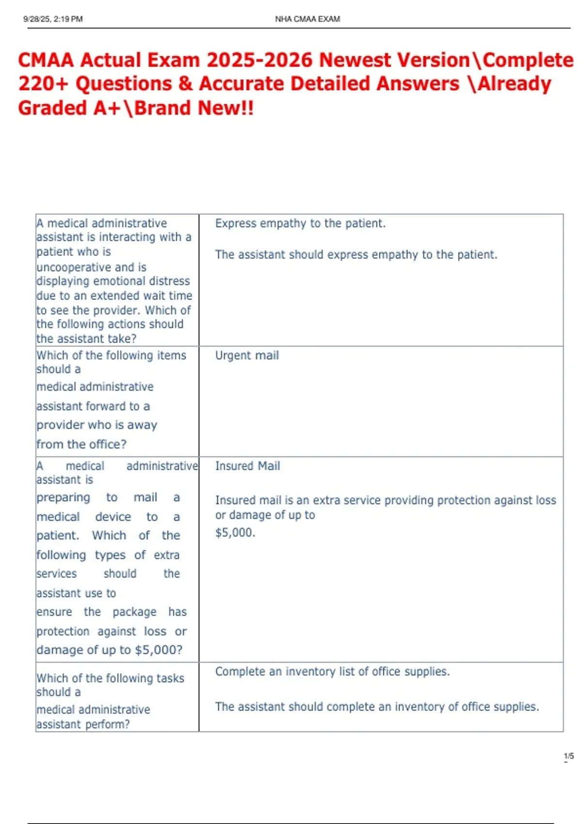 CMAA Actual Exam 2025-2026 Newest Version\Complete