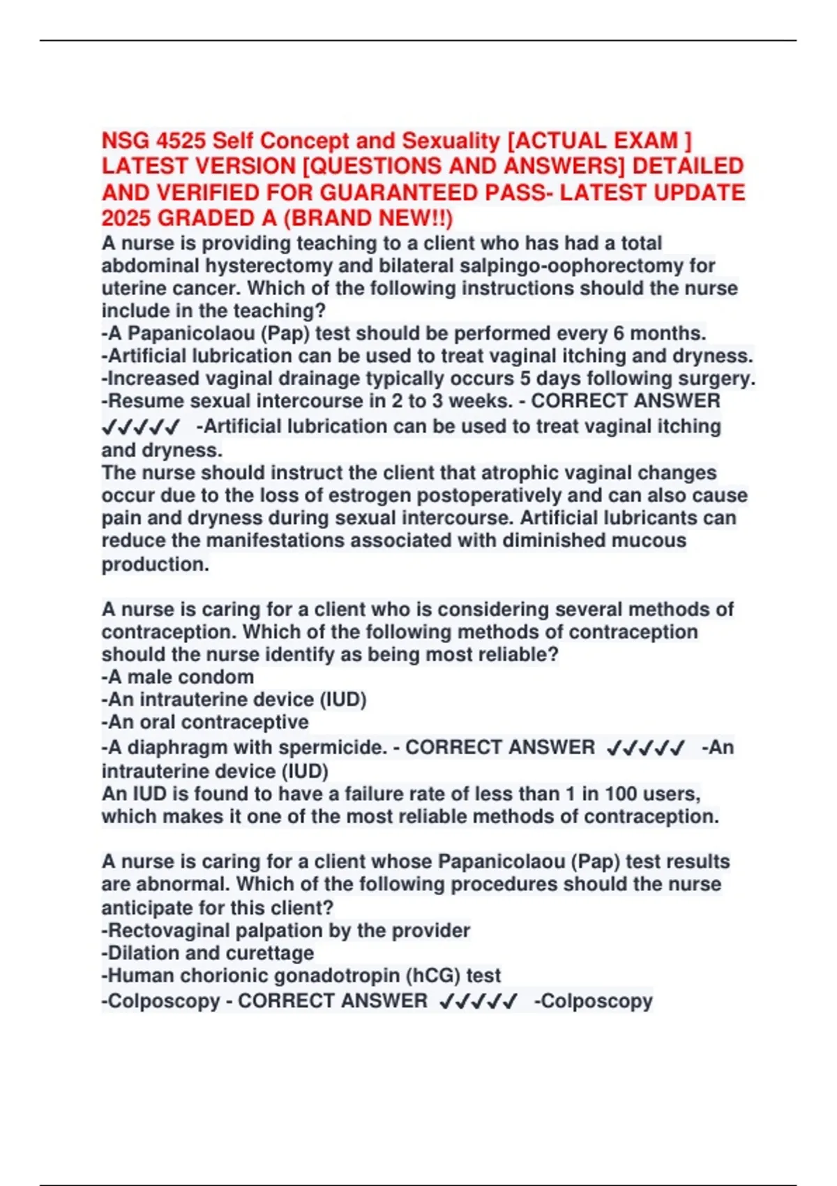 NSG 4525 Self Concept and Sexuality [ACTUAL EXAM ] LATEST VERSION [QUESTIONS AND ANSWERS] DETAILED AND VERIFIED FOR GUARANTEED PASS- LATEST UPDATE 2025 GRADED A (BRAND NEW!!)