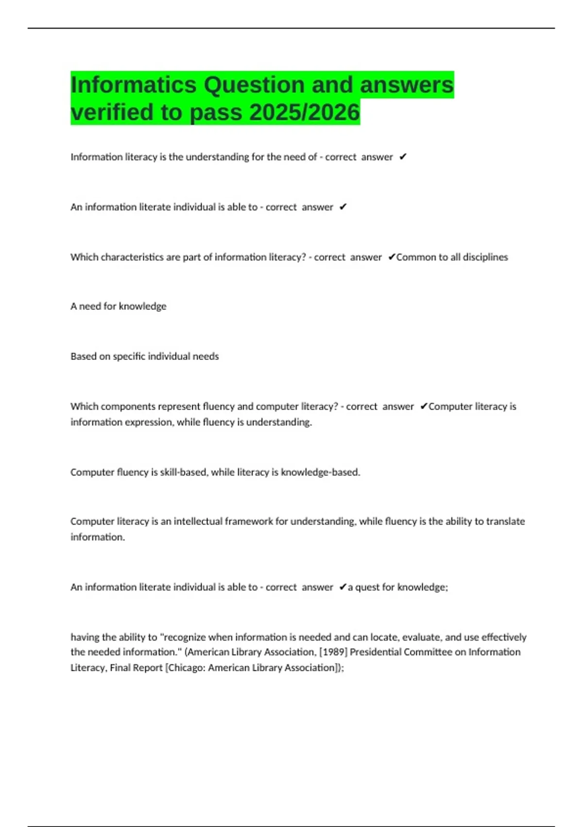 Which characteristics are part of information literacy? - correct answer ✔Common to all disciplines
