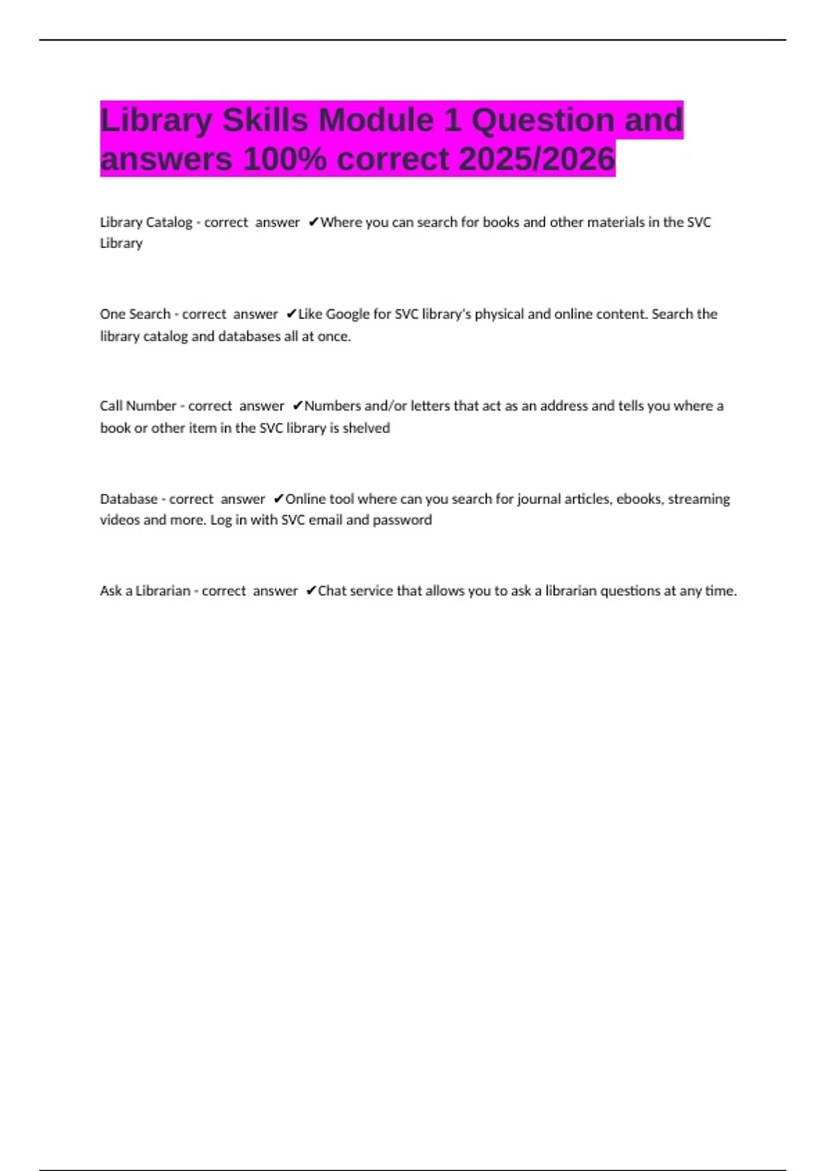 One Search - correct answer ✔Like Google for SVC library's physical and online content. Search the