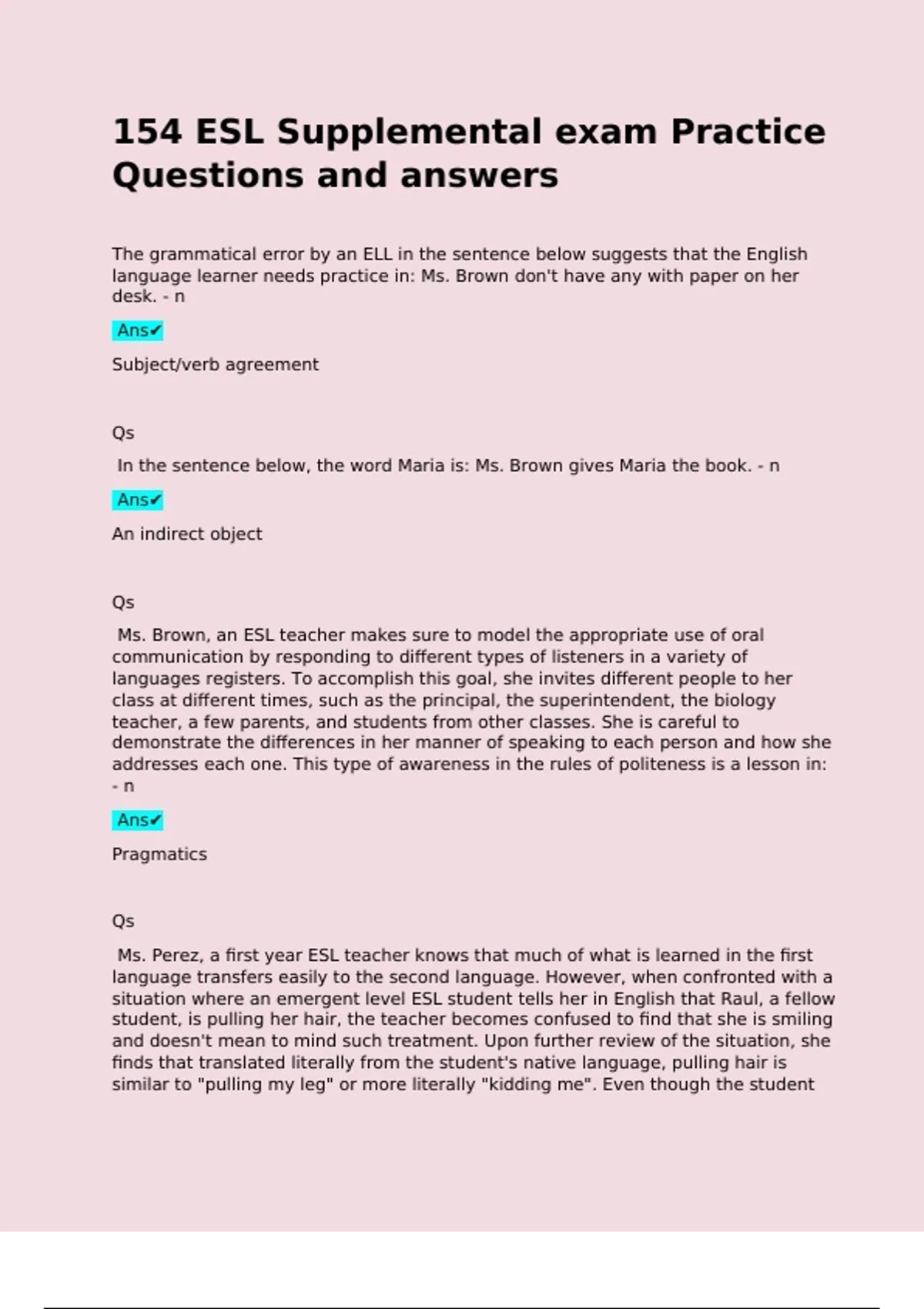 language learner needs practice in: Ms. Brown don't have any with paper on her