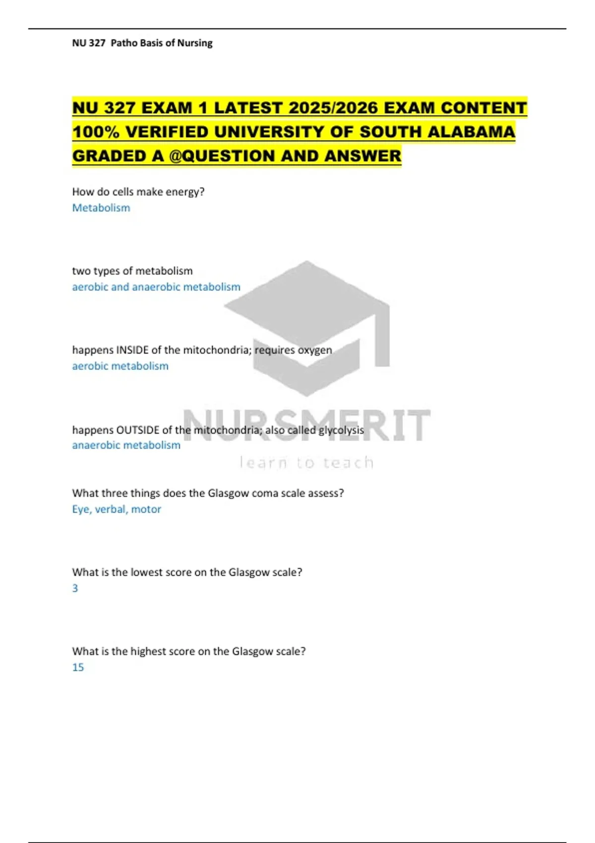 NU 327 EXAM 1 LATEST 2025/2026 EXAM CONTENT