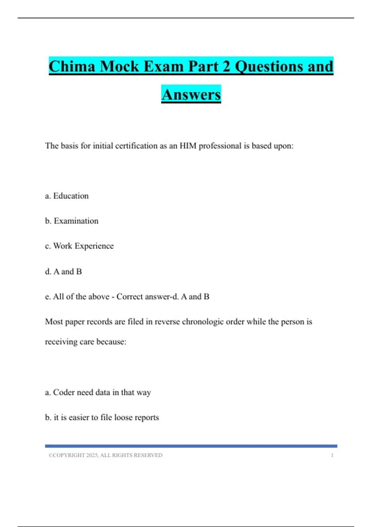 Chima Mock Exam Part 2 Questions and Answers