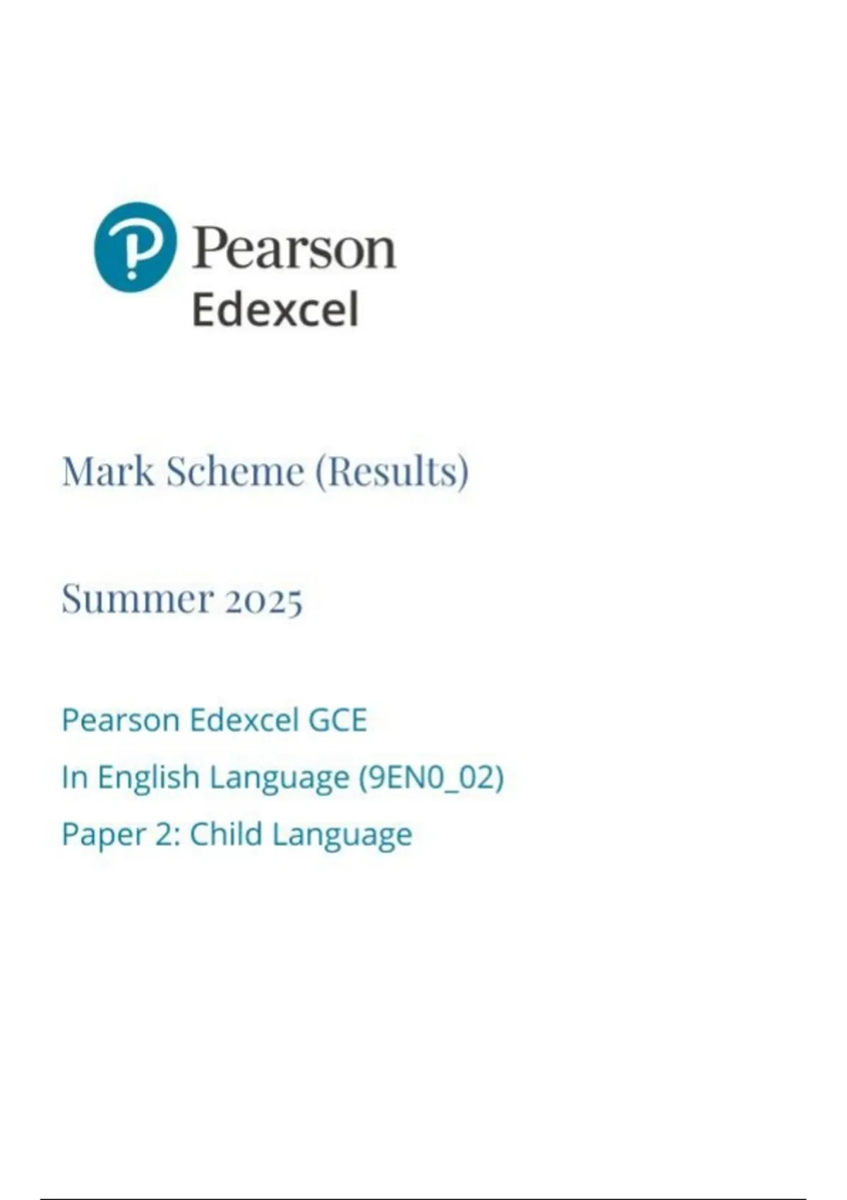 PEARSON EDEXCEL ADVANCED LEVEL ENGLISH LANGUAGE PAPER 2 JUNE 2025 FINAL MARK SCHEME