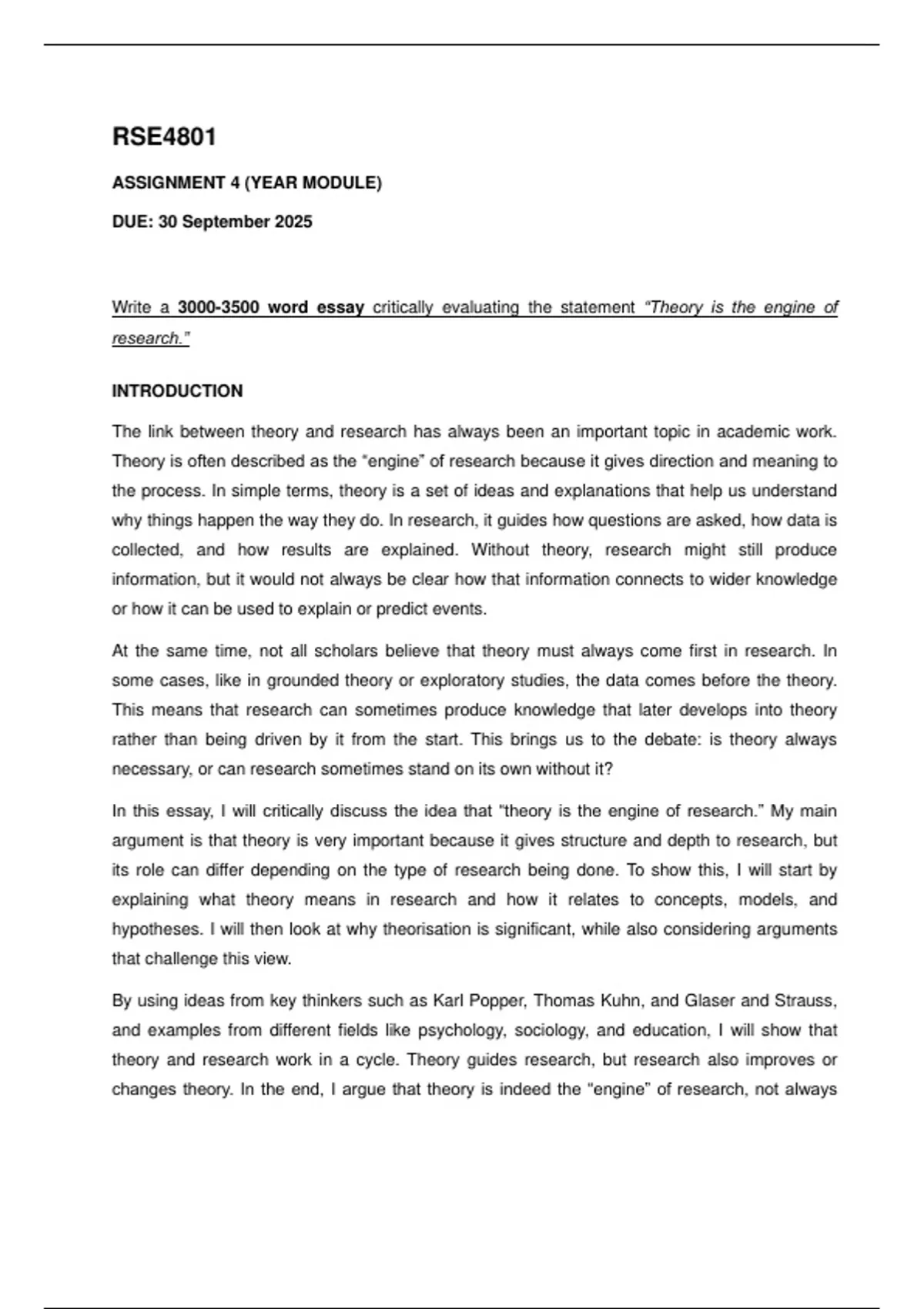 Write a 3000-3500 word essay critically evaluating the statement “Theory is the engine of
