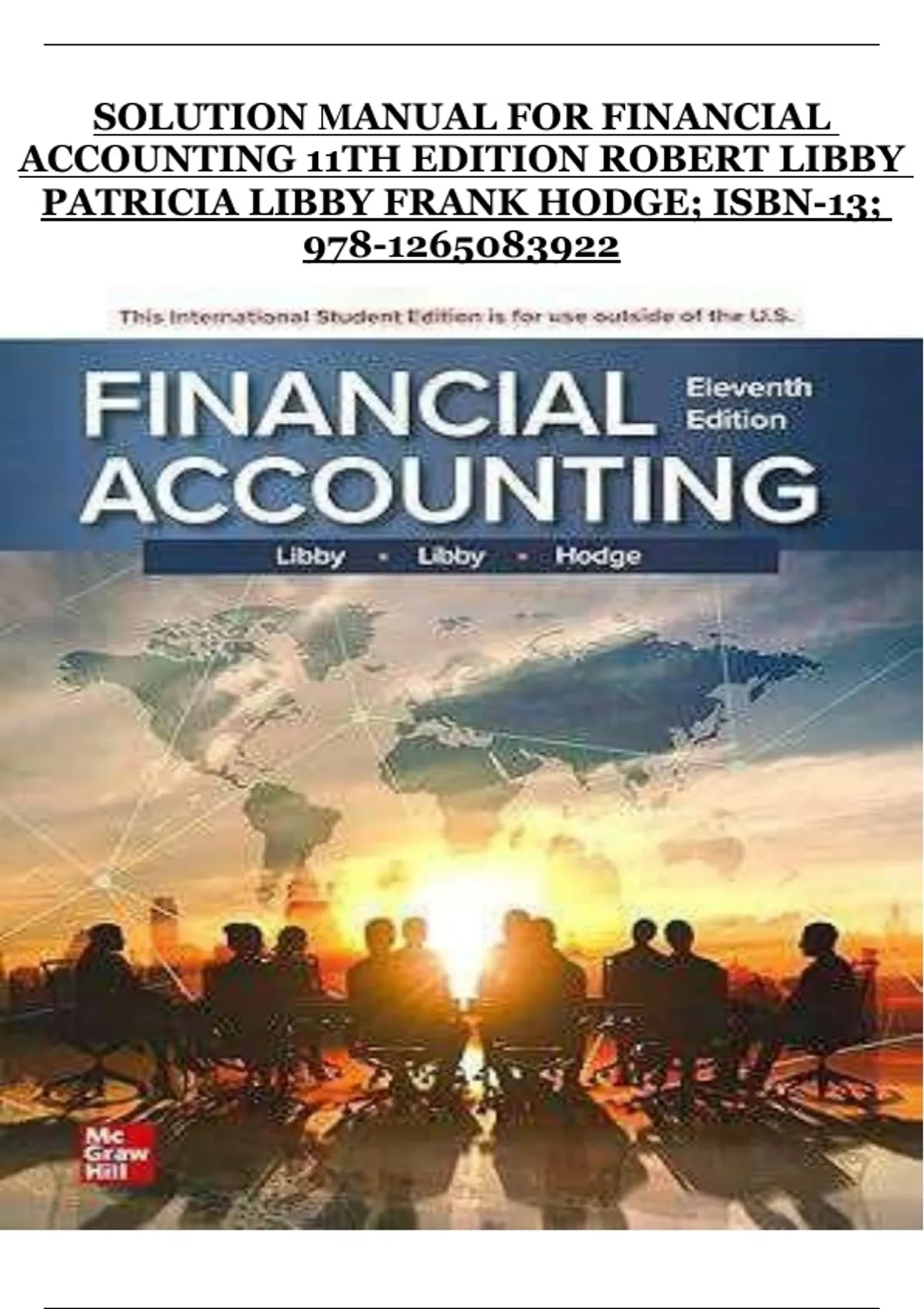 This solution manual provides complete, step-by-step answers for Financial Accounting 11th Edition by Robert Libby, Patricia Libby, and Frank Hodge. It includes detailed solutions to end-of-chapter problems, exercises, and applications, helping students strengthen their understanding of accounting principles and practices. An essential study resource for mastering financial accounting and preparing for exams.