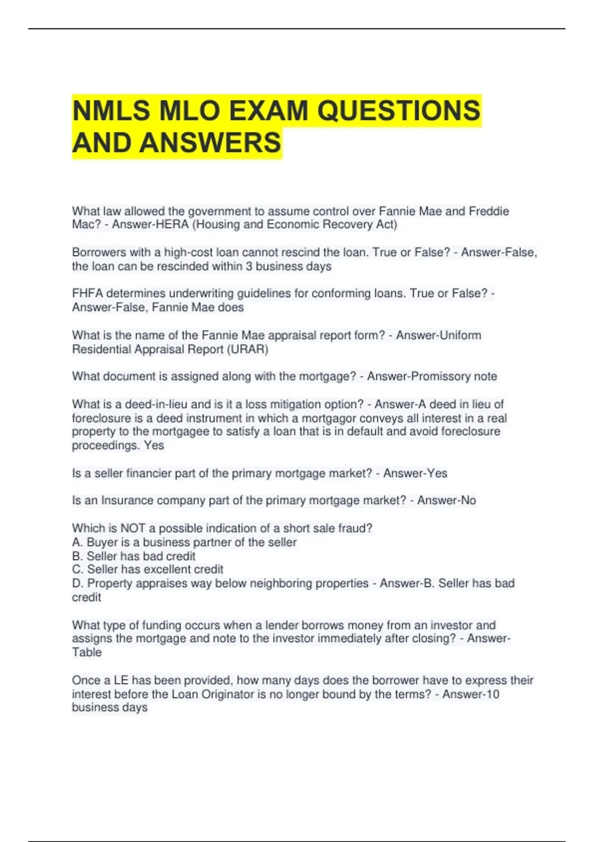 What is a mortgage broker? - Answer-A COMPANY (not a person) who can originate