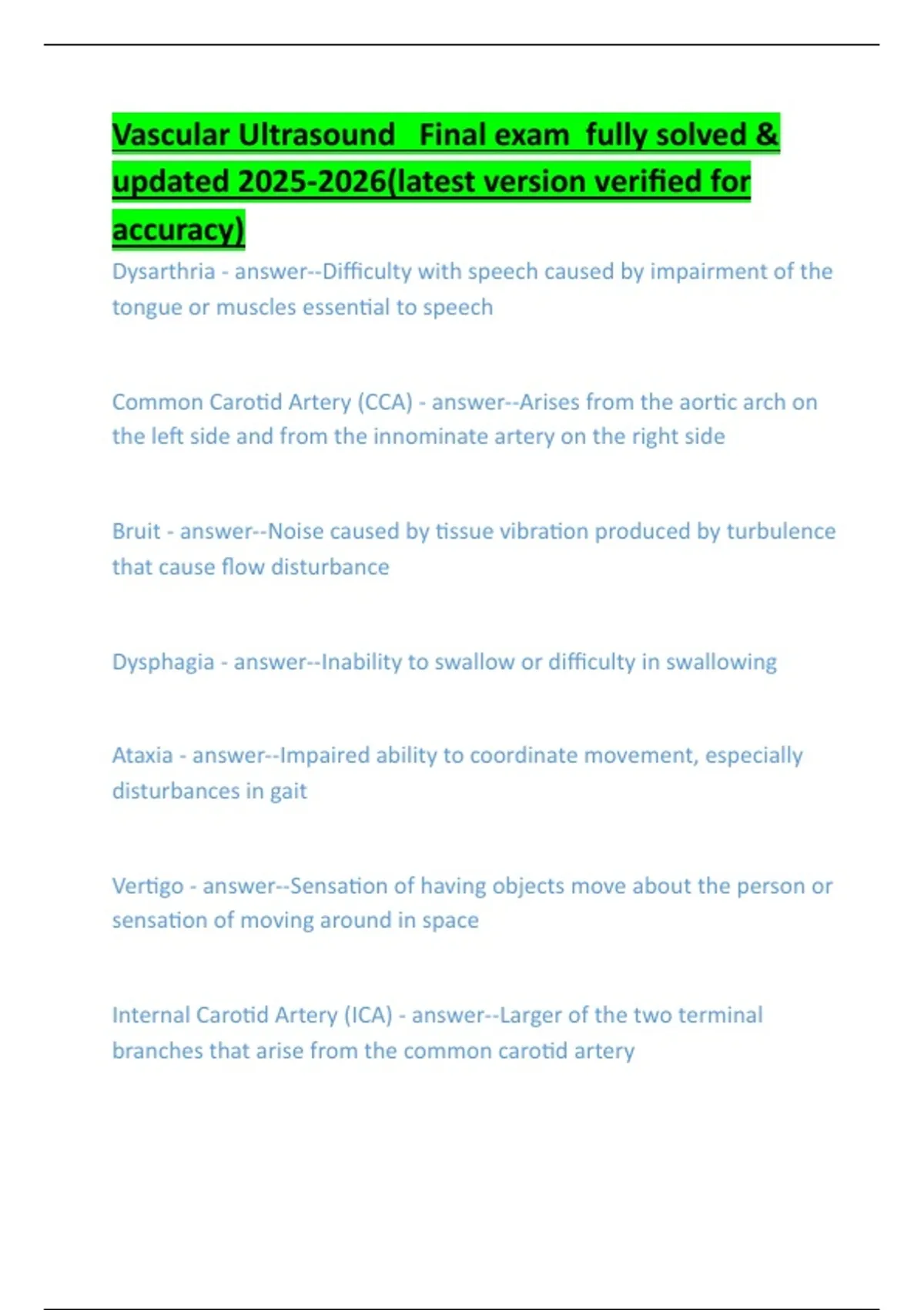 Vascular Ultrasound Final exam fully solved & updated (latest version verified for accuracy).