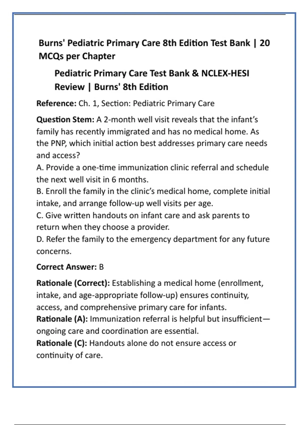 Pediatric Primary Care Test Bank & NCLEX-HESI