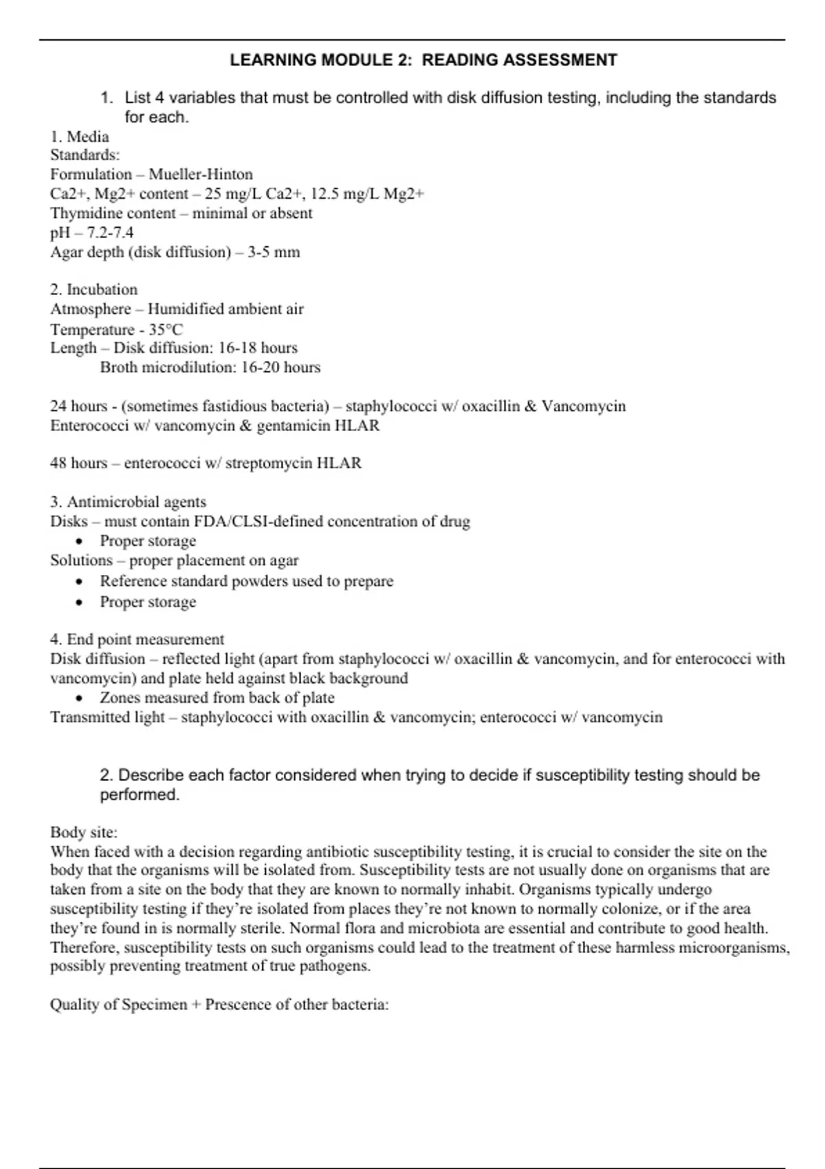 2. Describe each factor considered when trying to decide if susceptibility testing should be
