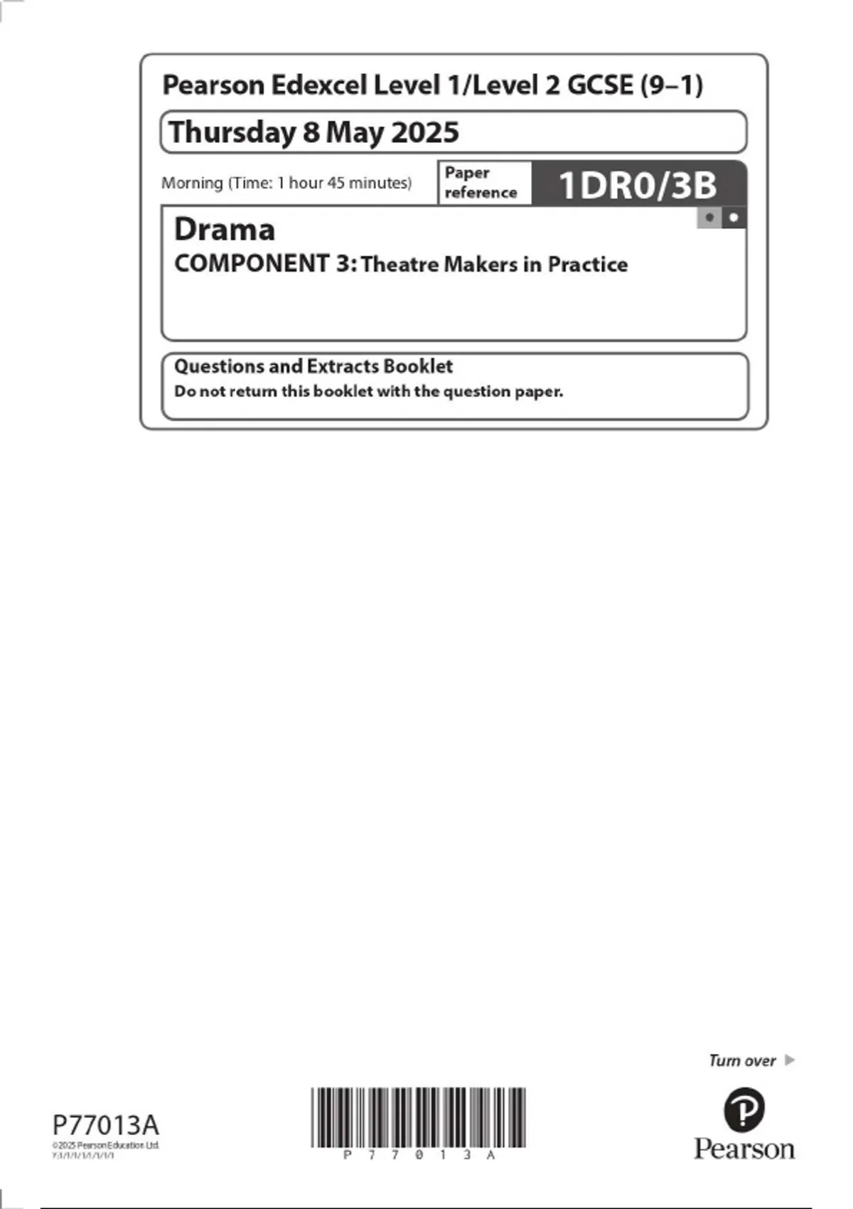 2025 Pearson Edexcel Level 1/Level 2 GCSE (9–1) Drama COMPONENT 3: Theatre Makers in Practice 1DR0/3B 2025 Pearson Edexcel Level 1/Level 2 GCSE (9–1) Drama COMPONENT 3: Theatre Makers in Practice 1DR0/3B