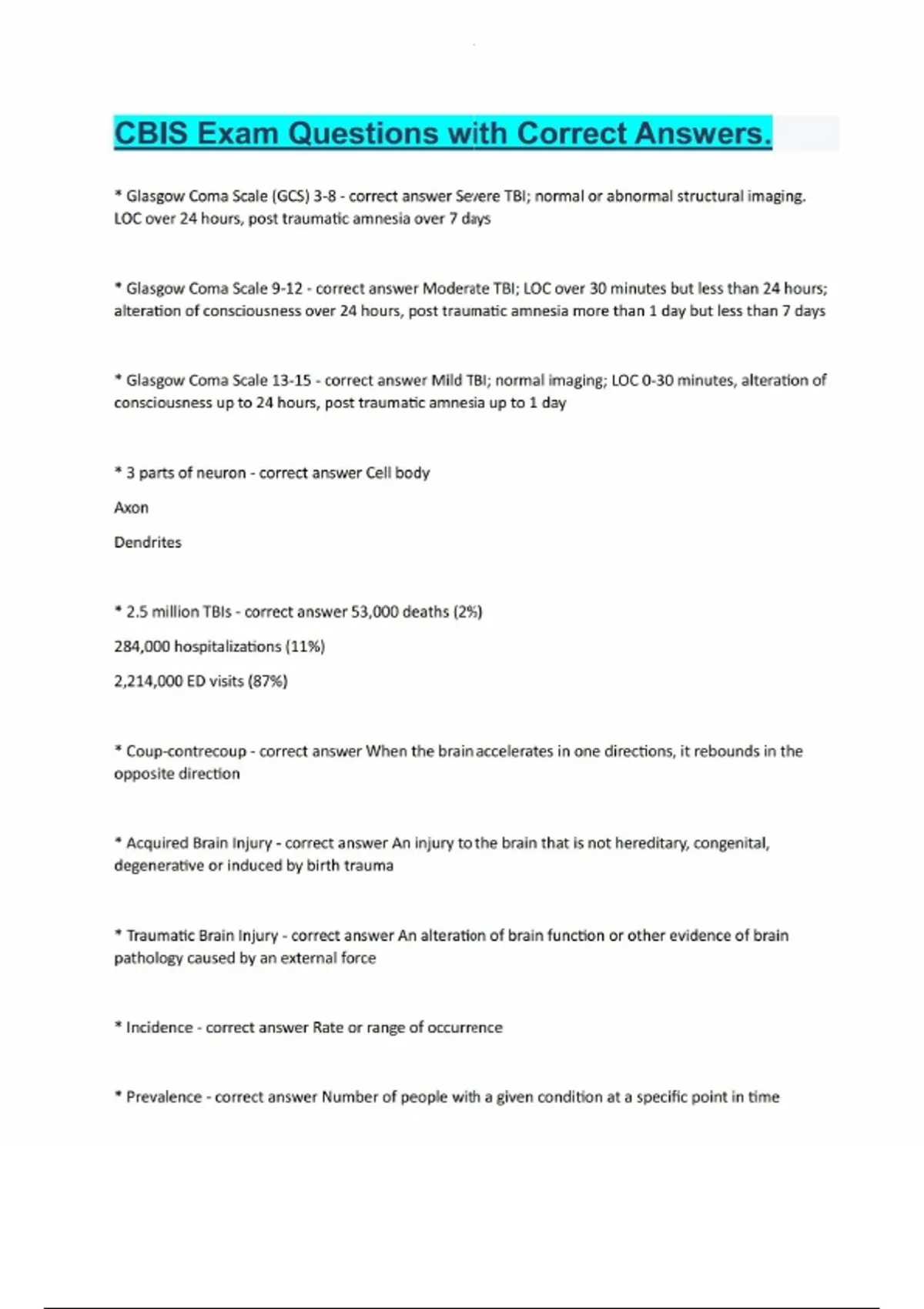 CBIS Exam Questions with Correct Answers.