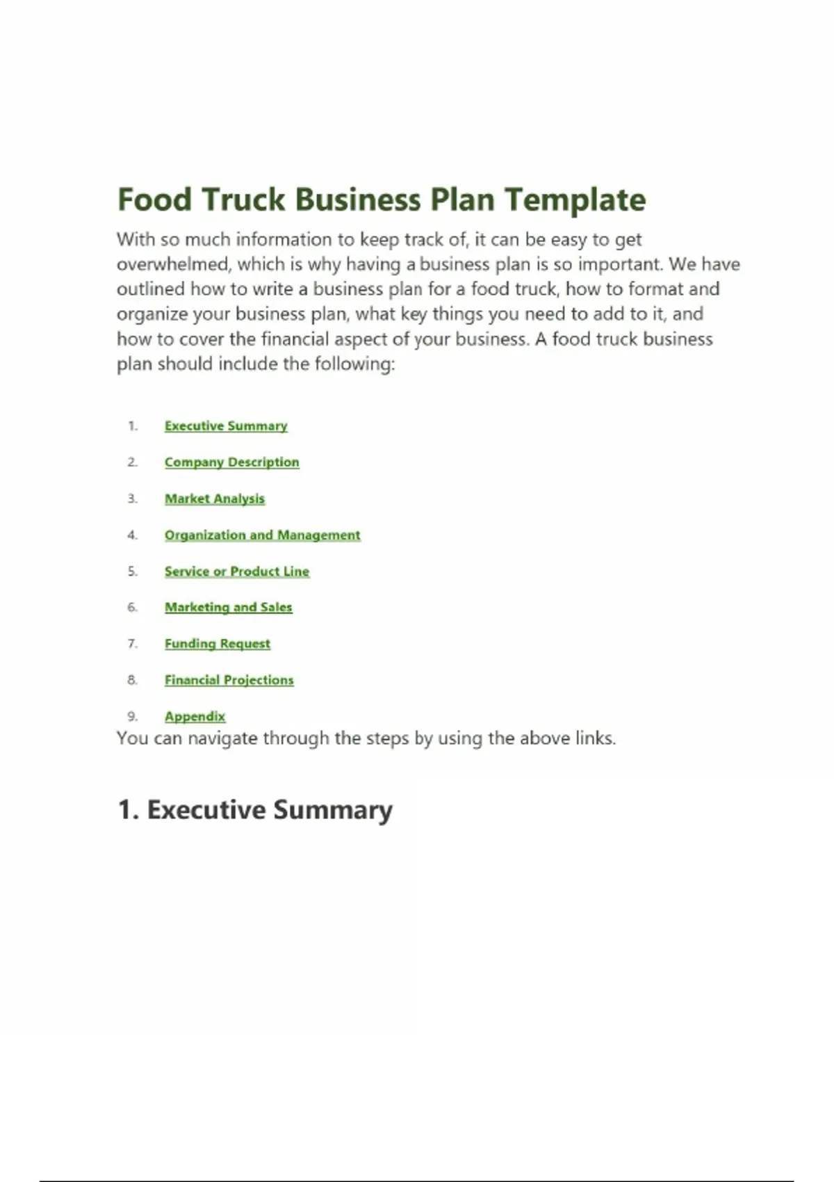 - Food Truck Business Plan Template
