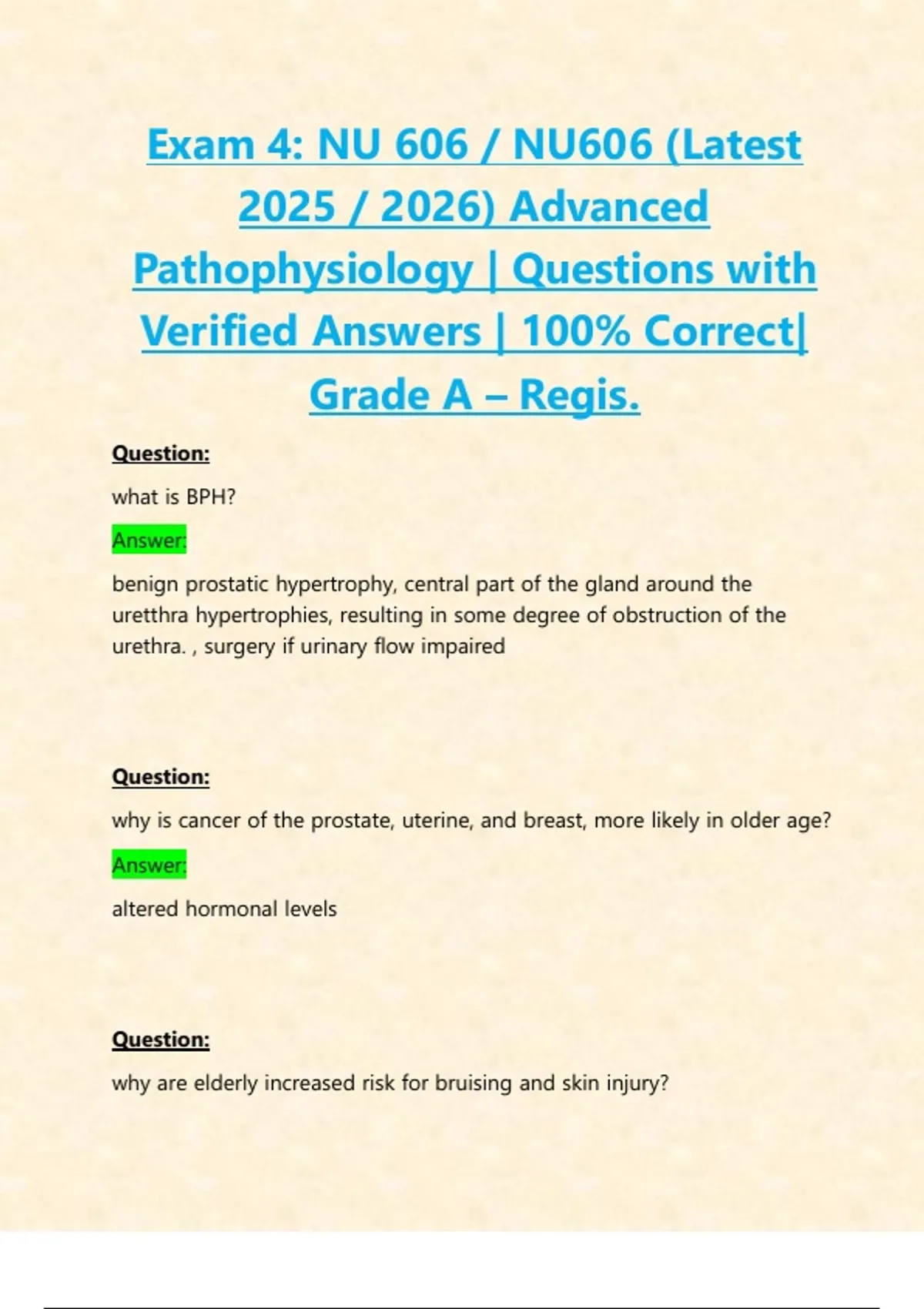 Pathophysiology | Questions with