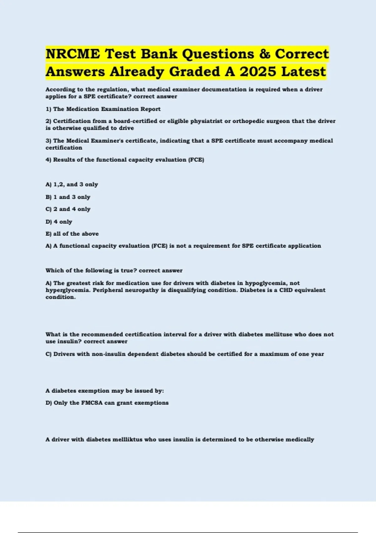 A driver with diabetes mellliktus who uses insulin is determined to be otherwise medically