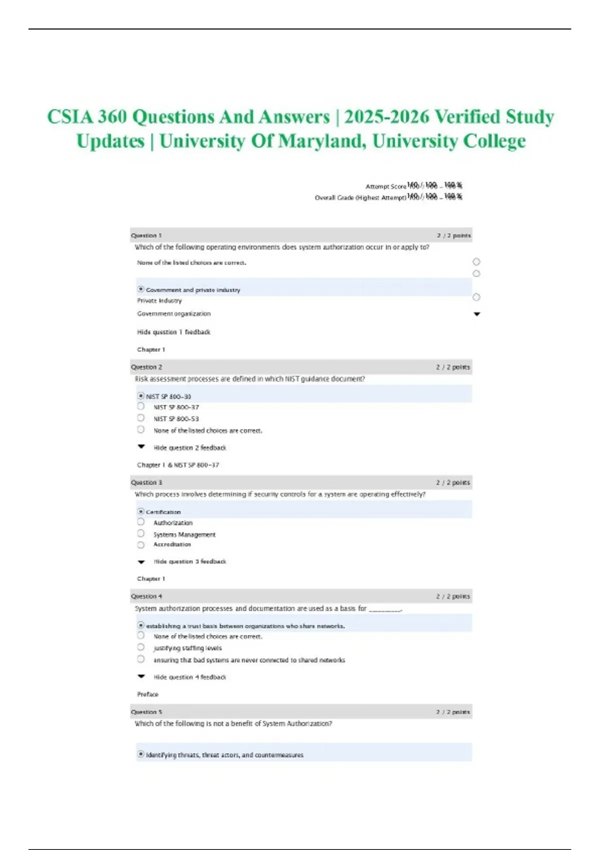 CSIA 360 Questions And Answers | Verified Study Updates | University Of Maryland, University College