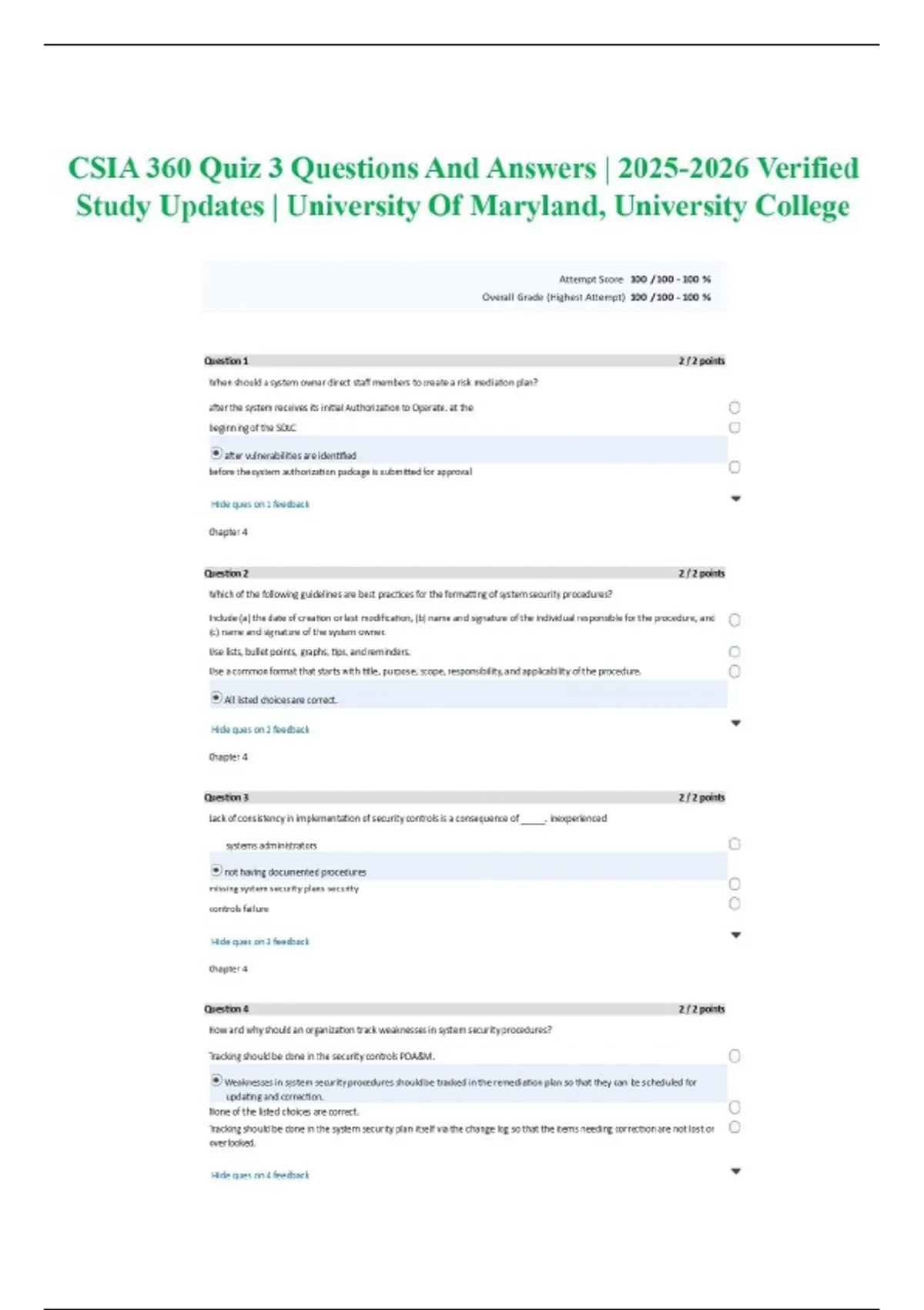 CSIA 360 Quiz 3 Questions And Answers | Verified Study Updates | University Of Maryland, University College