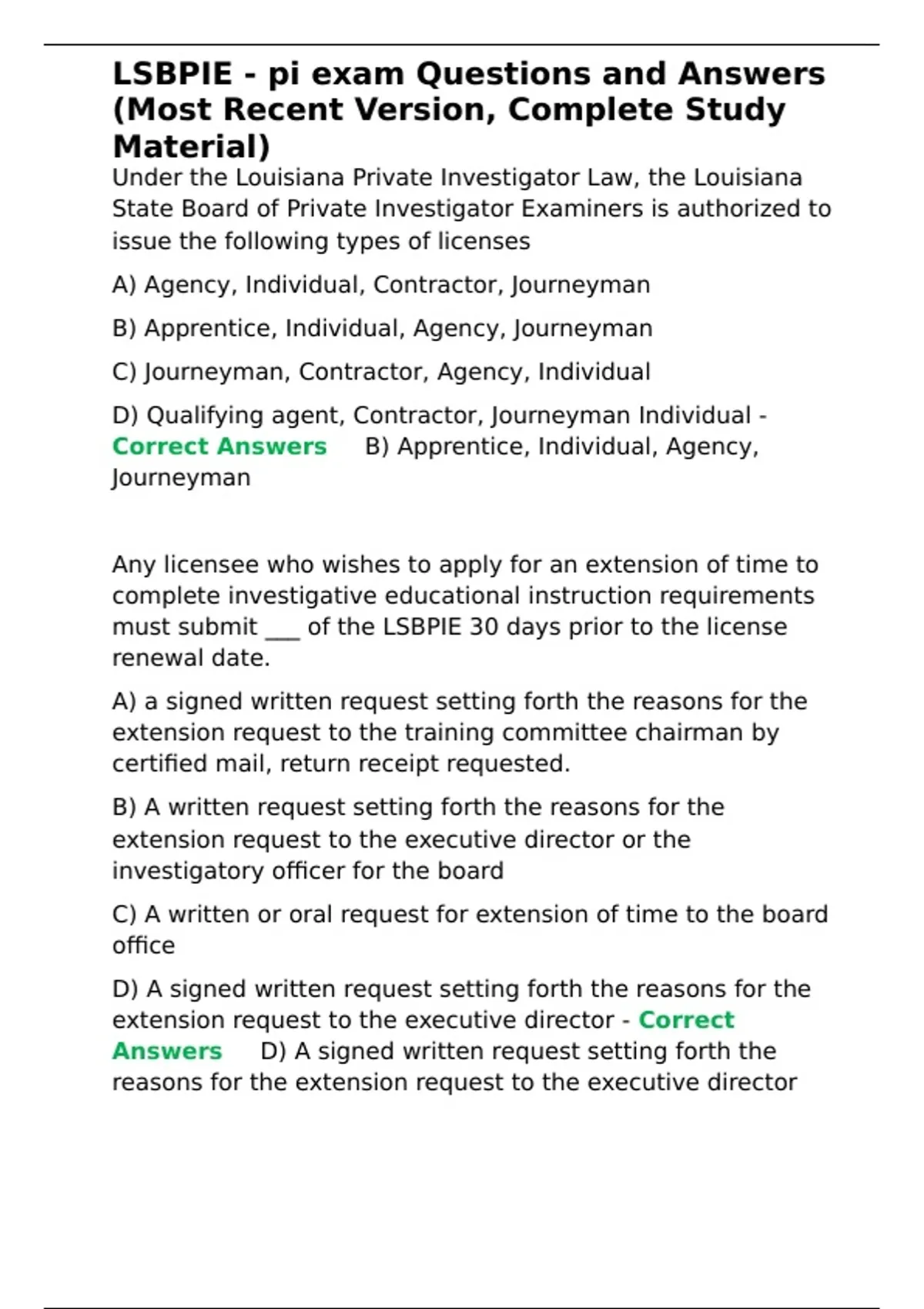 LSBPIE - pi exam Questions and Answers (Most Recent Version, Complete Study Material).