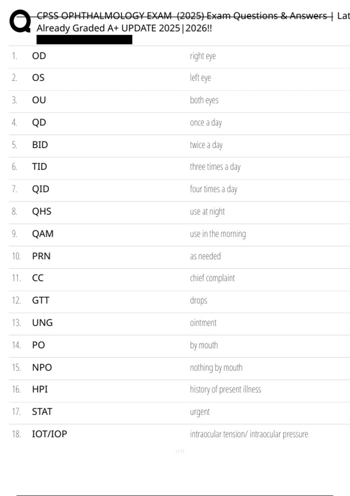 , CPSS OPHTHALMOLOGY EXAM (2025) Exam Questions & Answers | Lat