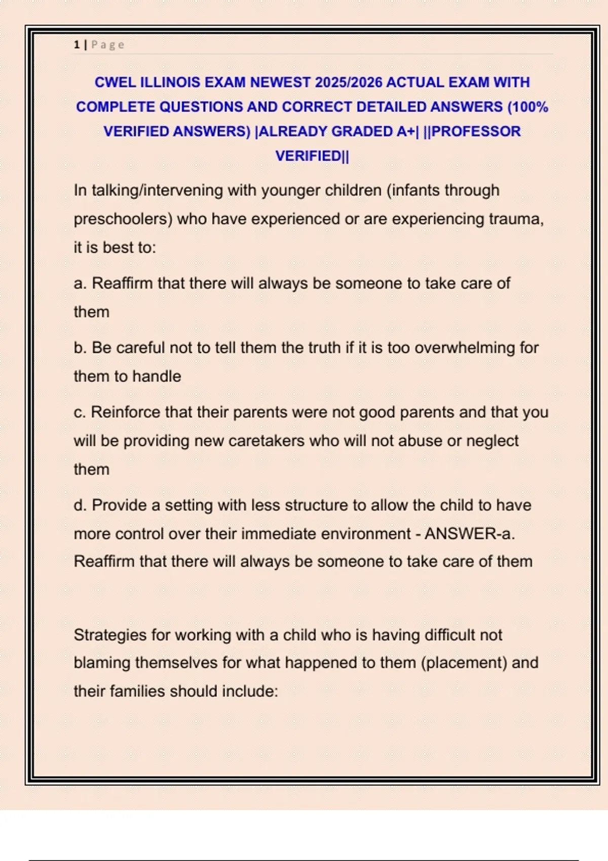 CWEL ILLINOIS EXAM NEWEST 2025/2026 ACTUAL EXAM WITH
