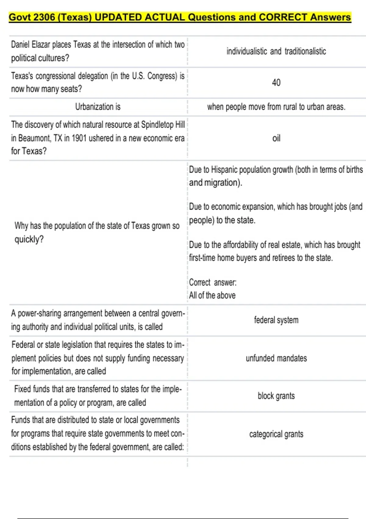 Govt 2306 (Texas) UPDATED ACTUAL Questions and CORRECT Answers