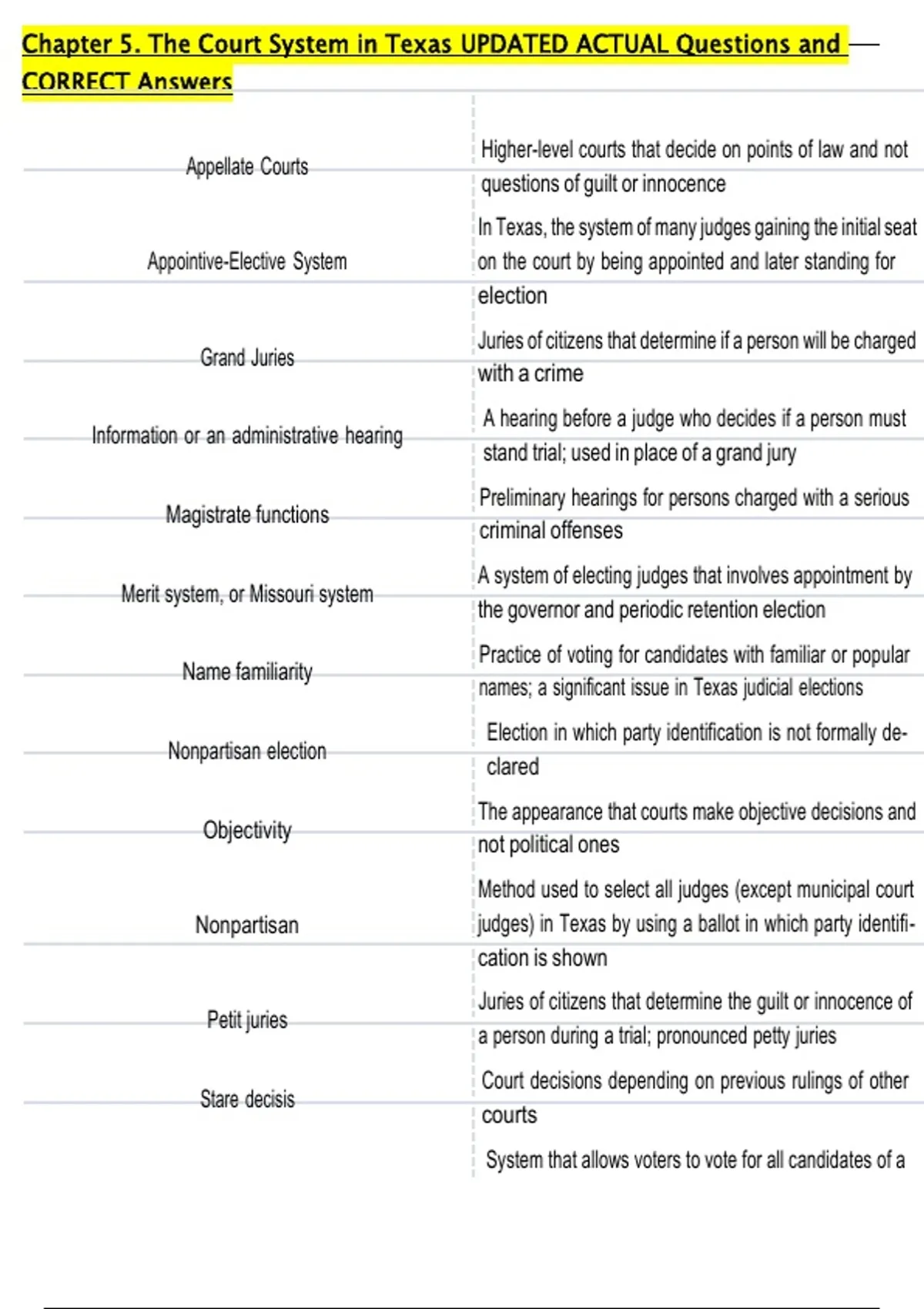 Chapter 5. The Court System in Texas UPDATED ACTUAL Questions and