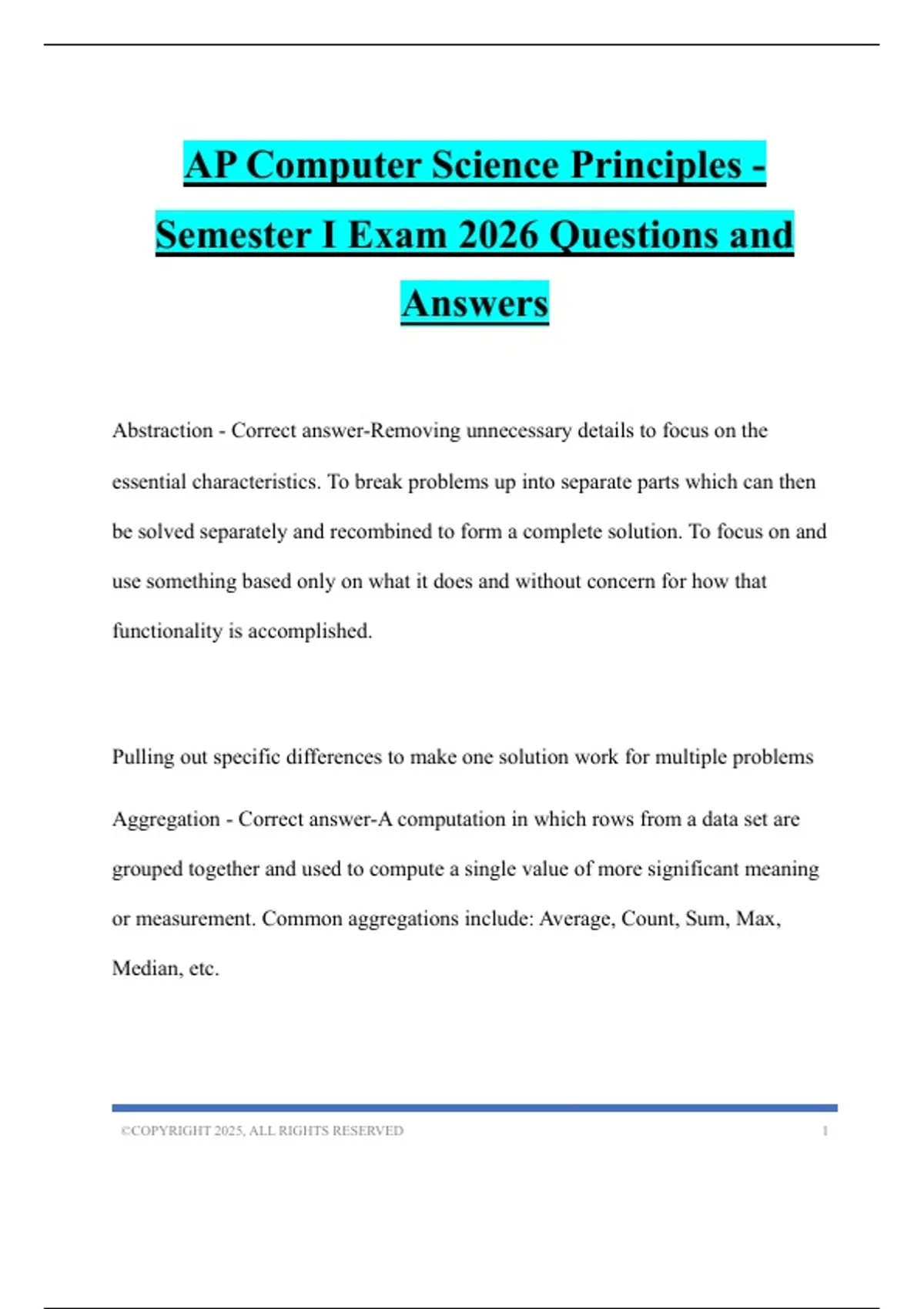 AP Computer Science Principles - Semester I Exam 2026 Questions and Answers