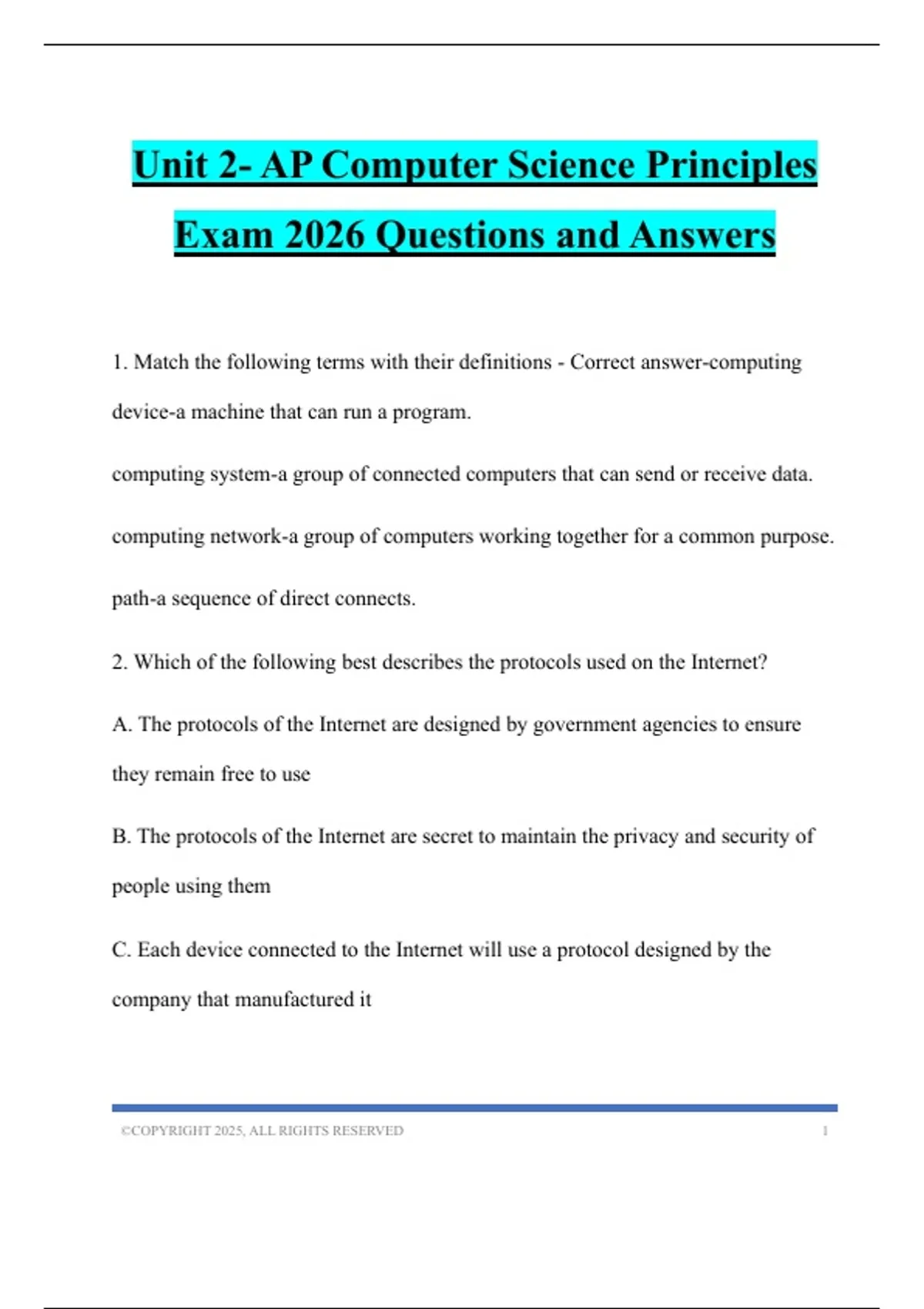 network - Correct answer-D. The protocols of the Internet are open and used by all