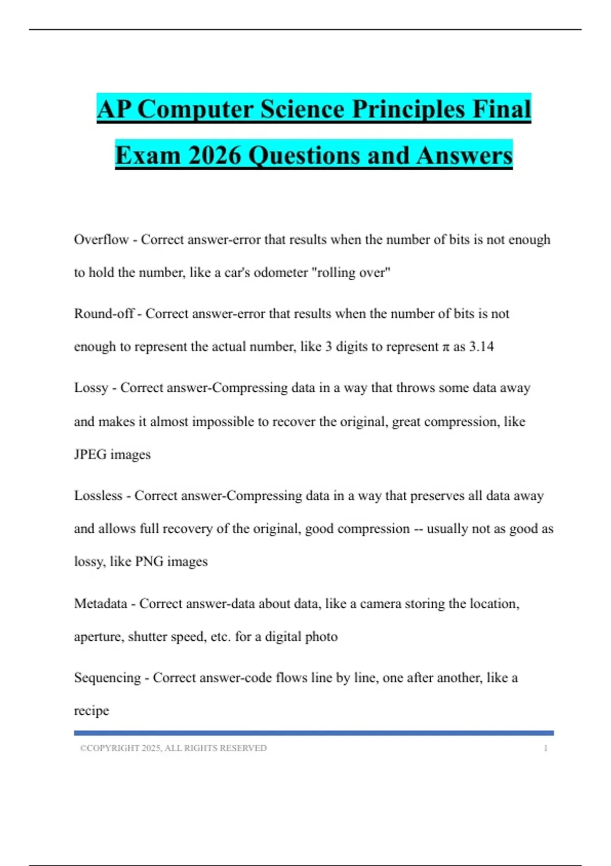 Lossless - Correct answer-Compressing data in a way that preserves all data away