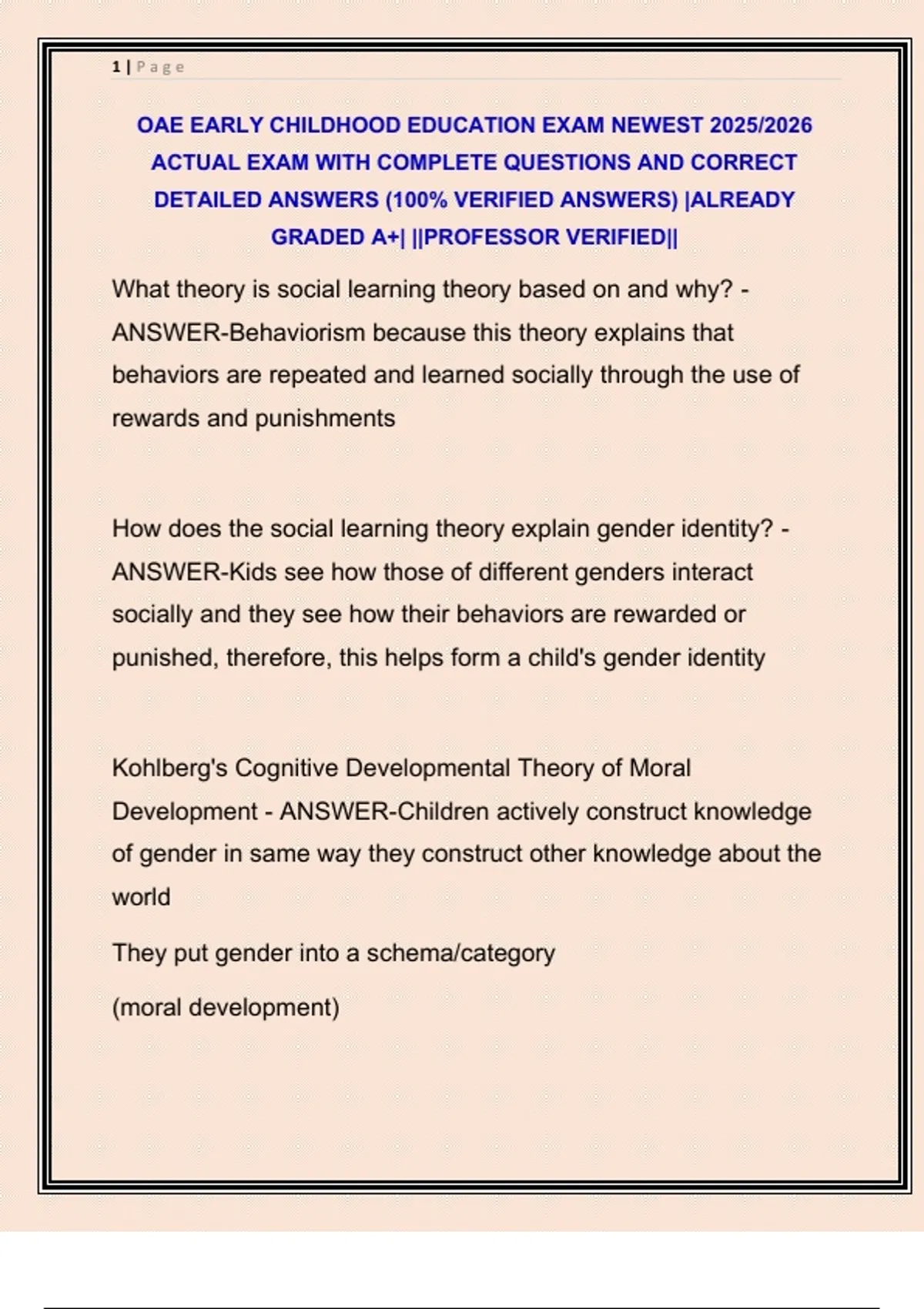 OAE EARLY CHILDHOOD EDUCATION EXAM NEWEST 2025/2026