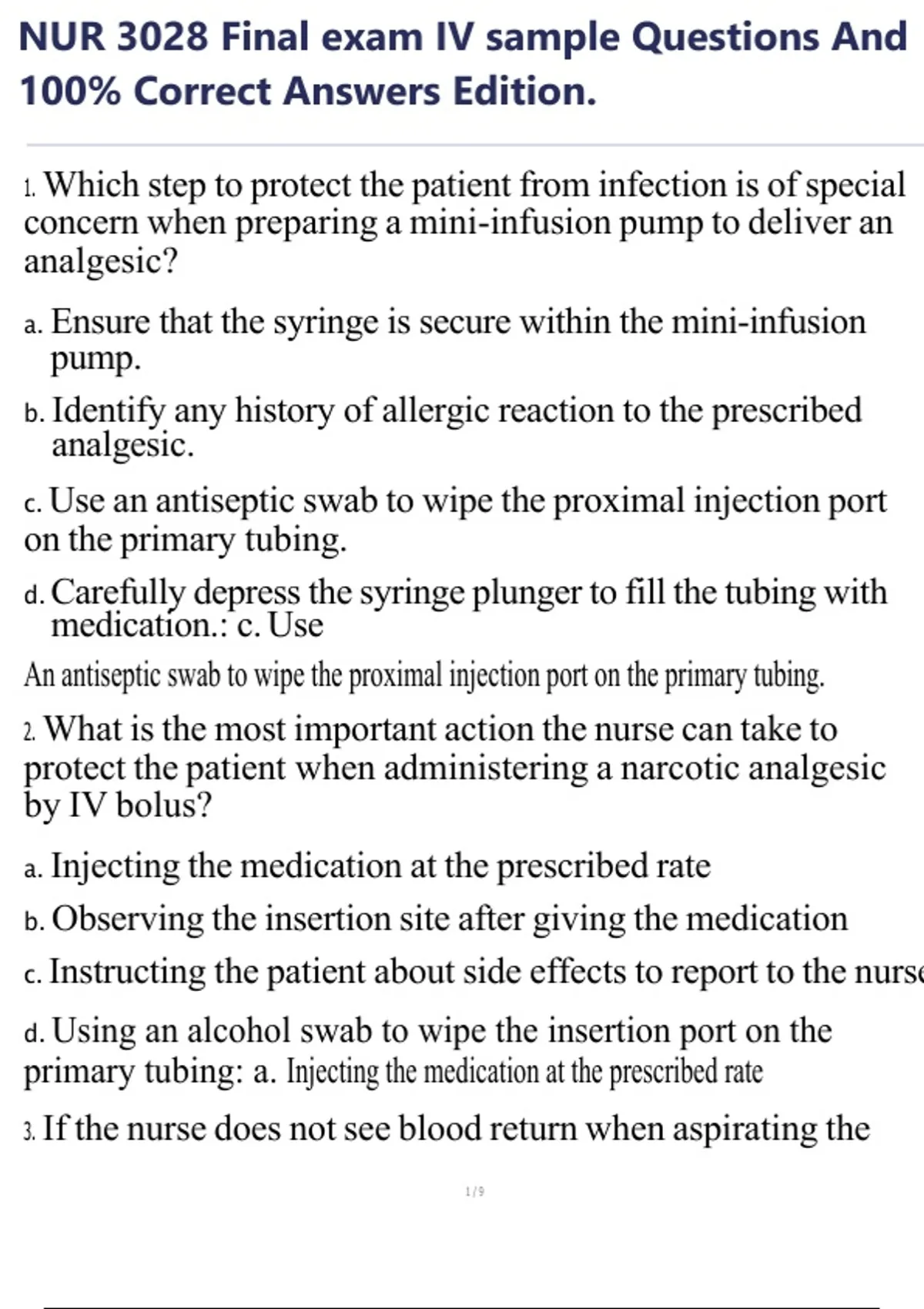 NUR 3028 Final exam IV sample Questions And 100% Correct Answers Edition.