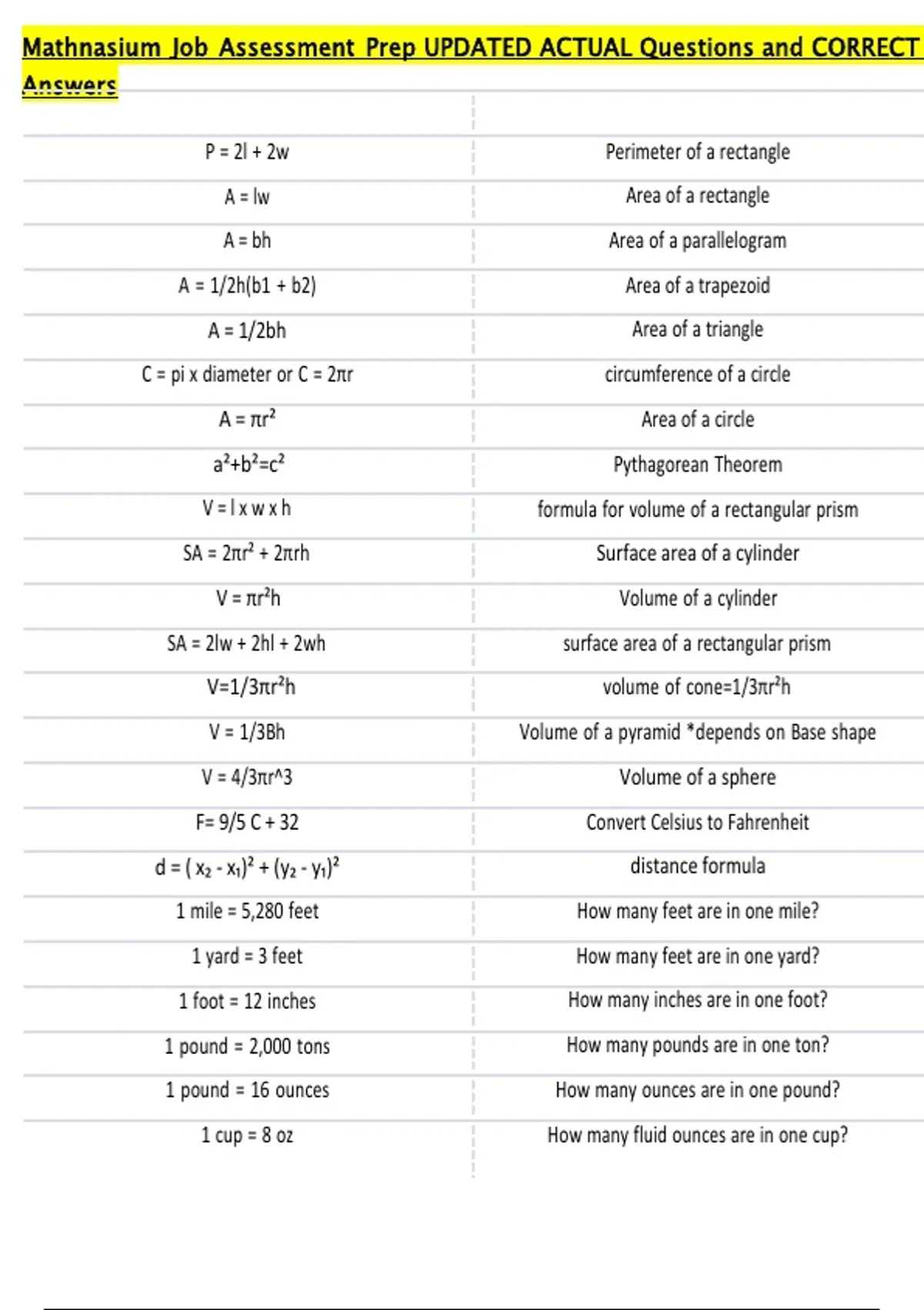 Mathnasium Job Assessment Prep UPDATED ACTUAL Questions and CORRECT