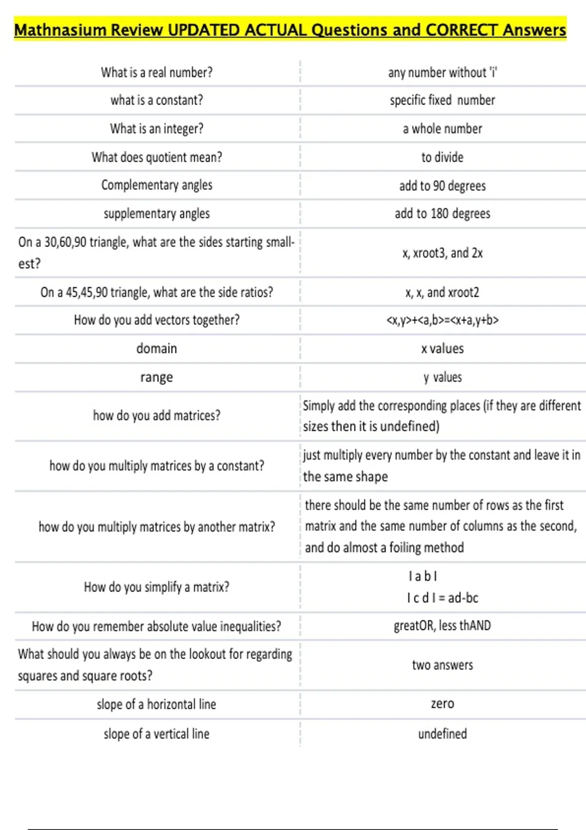 Mathnasium Review UPDATED ACTUAL Questions and CORRECT Answers
