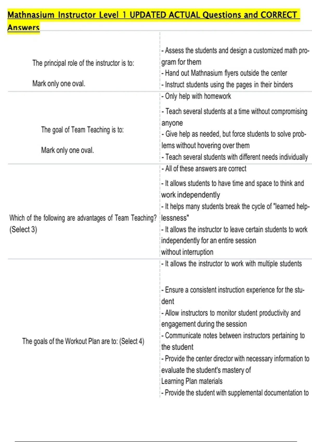 Mathnasium Instructor Level 1 UPDATED ACTUAL Questions and CORRECT