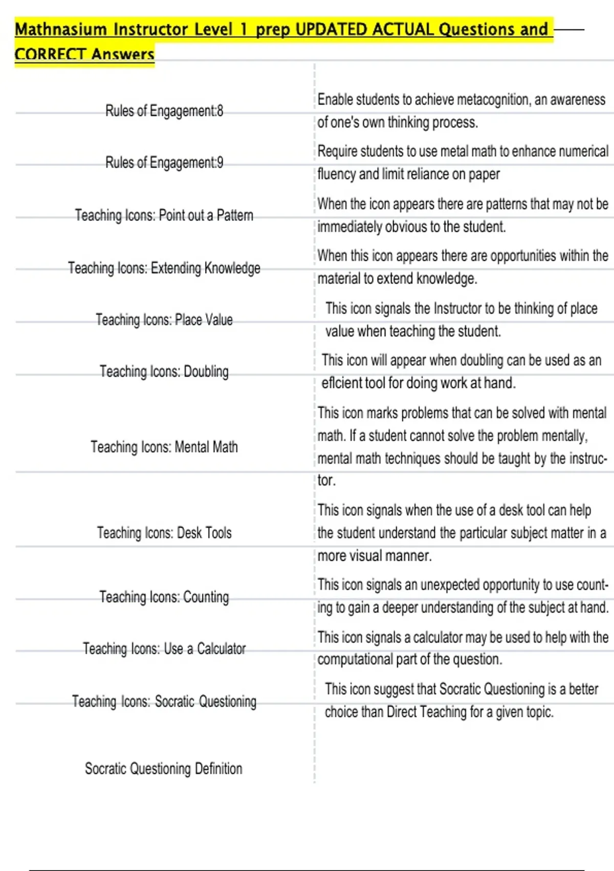 Mathnasium Instructor Level 1 prep UPDATED ACTUAL Questions and