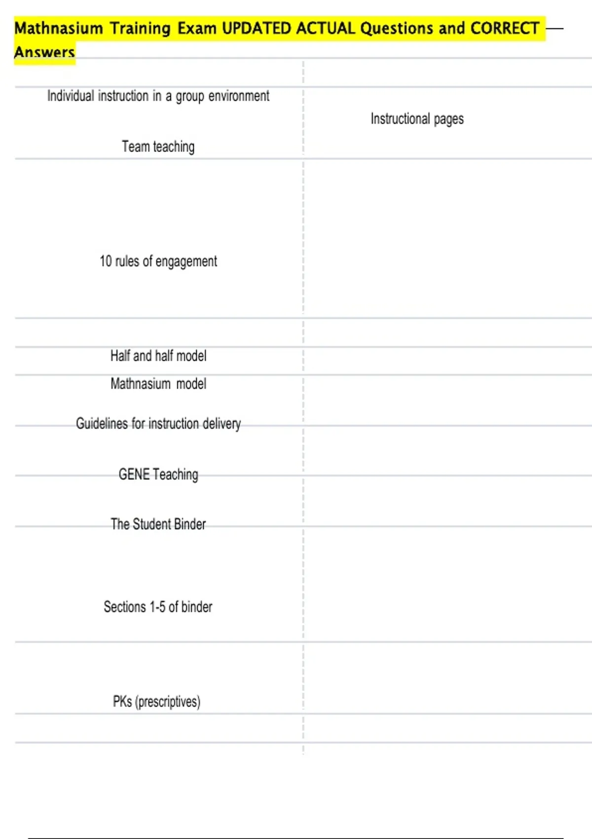 Mathnasium Training Exam UPDATED ACTUAL Questions and CORRECT Answers