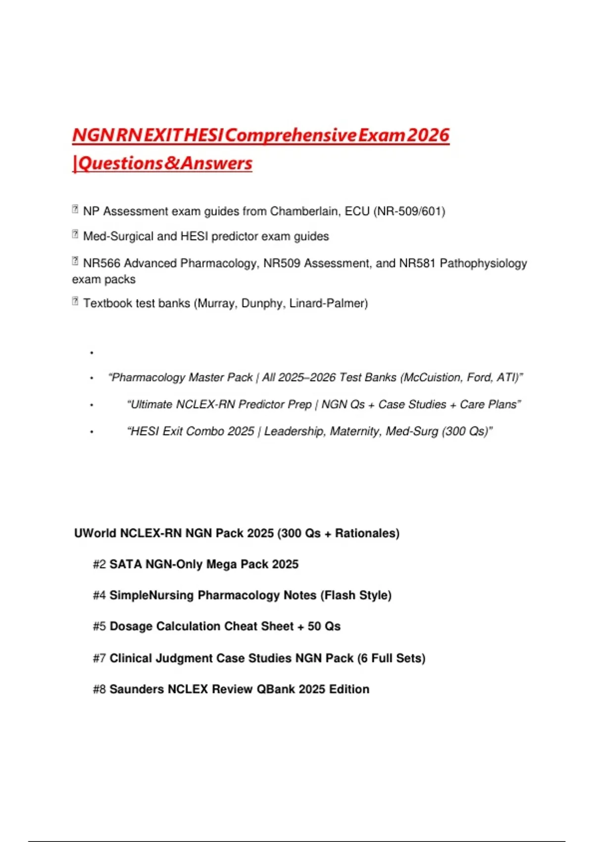 • “PharmacologyAMasterAPackA|AAllA2025–2026ATestABanksA(McCuistion,AFord,AATI)”