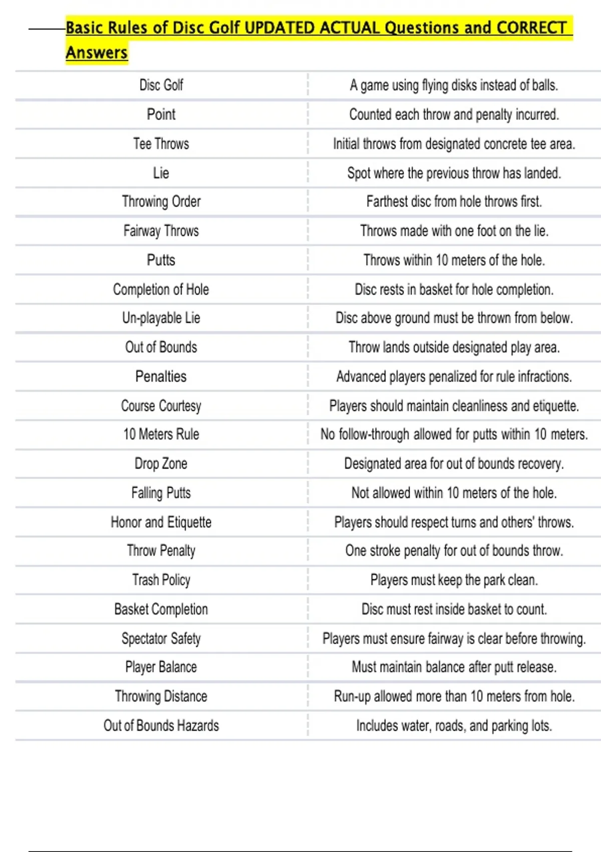 Throw Penalty One stroke penalty for out of bounds throw.