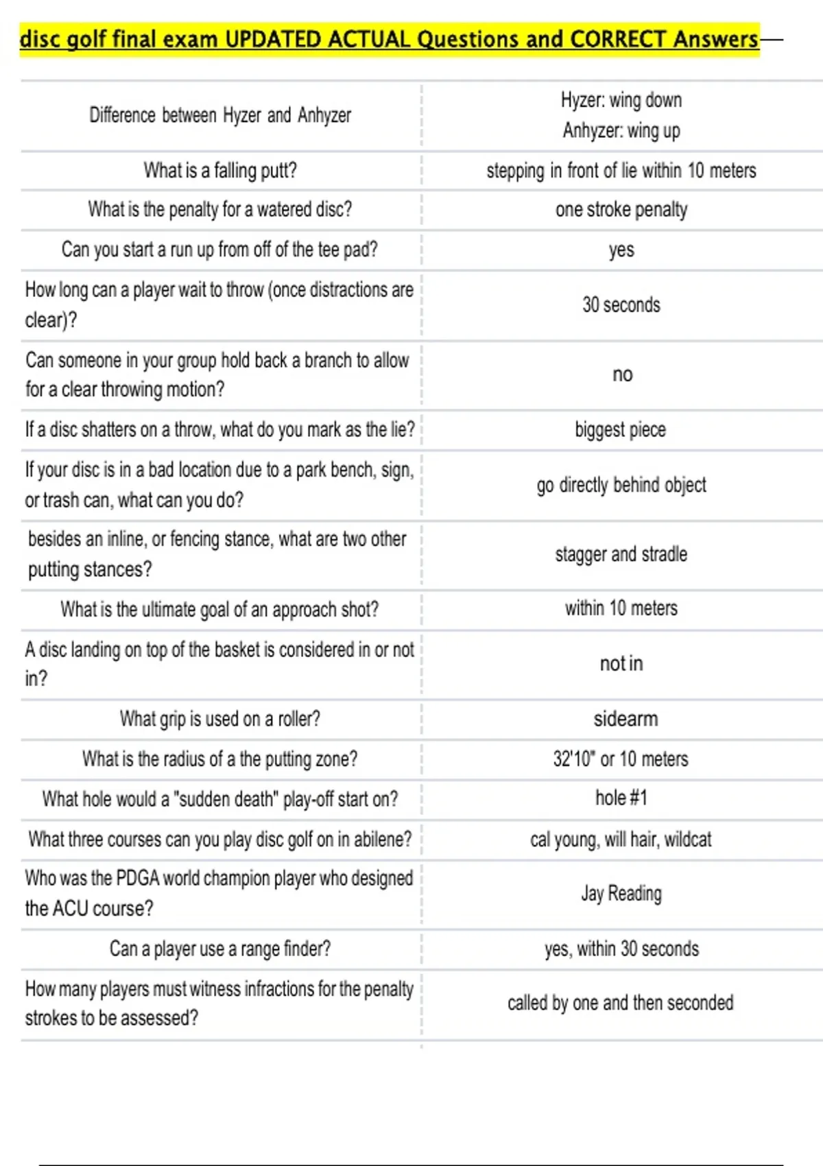 disc golf final exam UPDATED ACTUAL Questions and CORRECT Answers