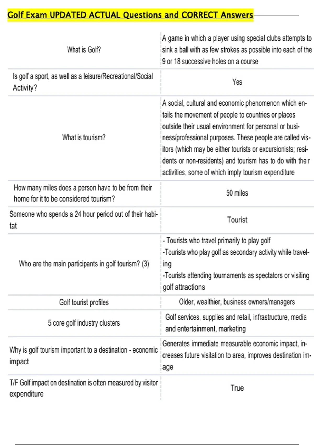 Golf Exam UPDATED ACTUAL Questions and CORRECT Answers