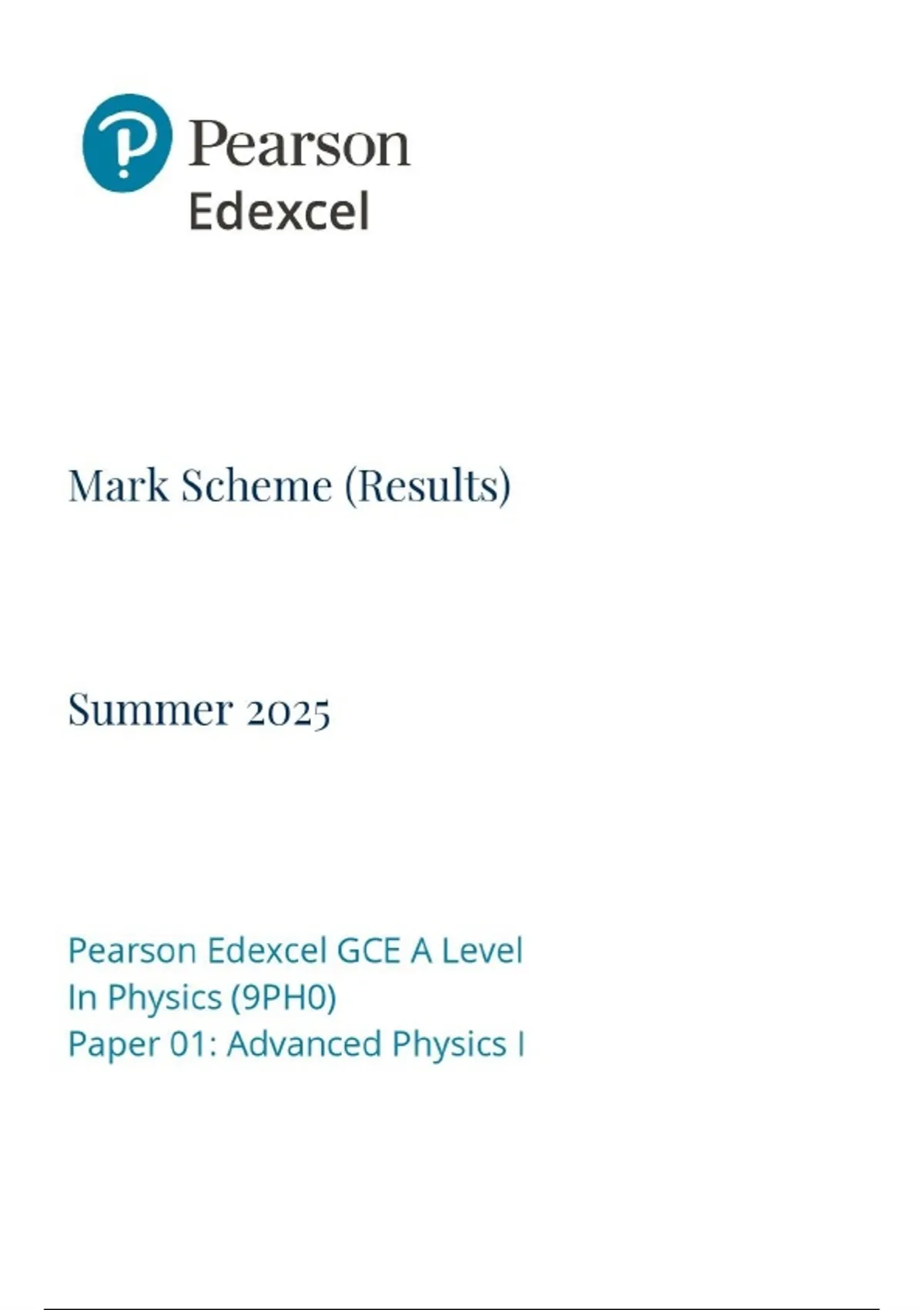 A-Level EDEXCEL 2025 Physics Paper 1 mark scheme