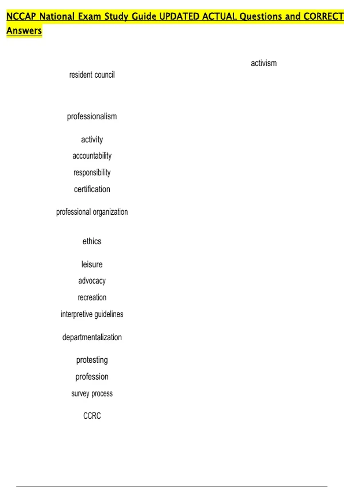 NCCAP National Exam Study Guide UPDATED ACTUAL Questions and CORRECT Answers