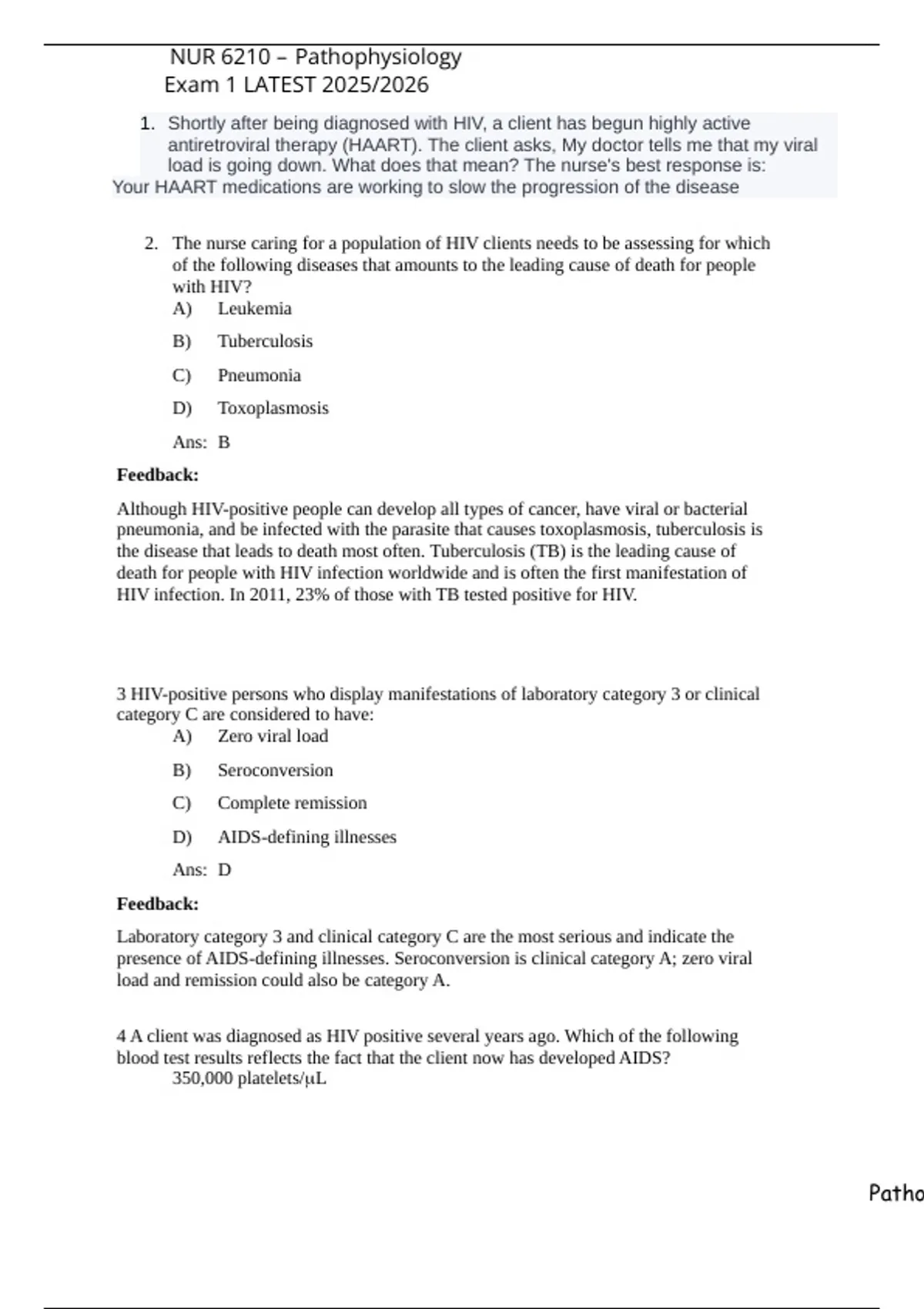 1. Shortly after being diagnosed with HIV, a client has begun highly active