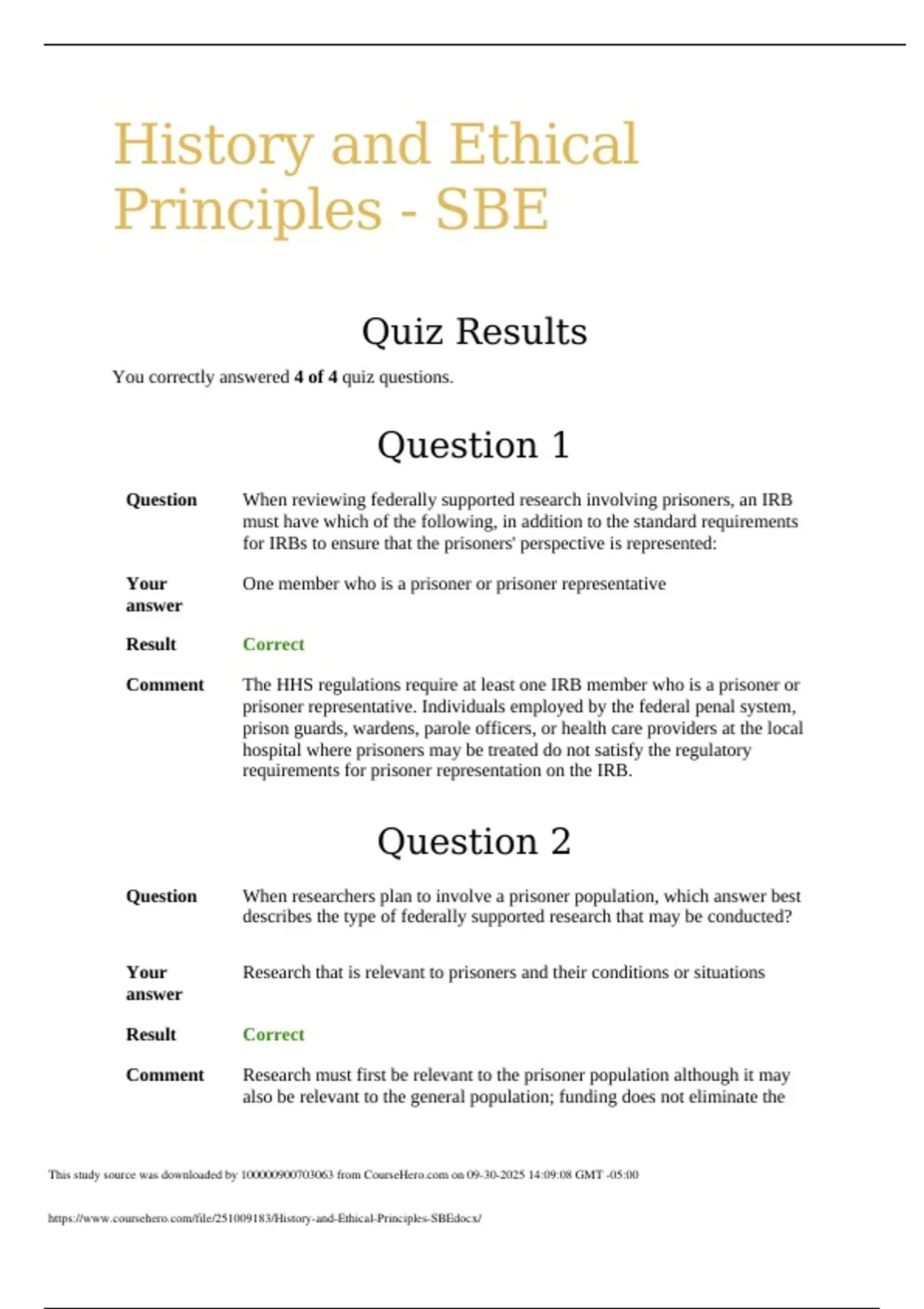ED 6103 History and Ethical Principles - SBE Quiz; Answered 2025/26.