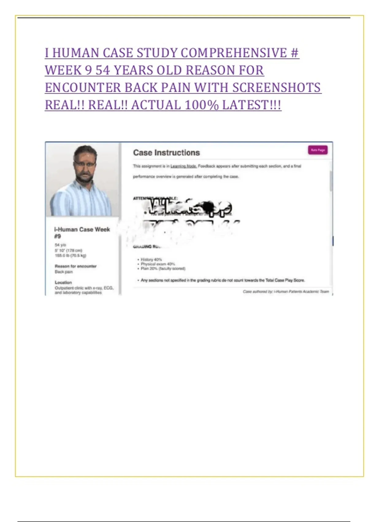 I HUMAN CASE STUDY COMPREHENSIVE #