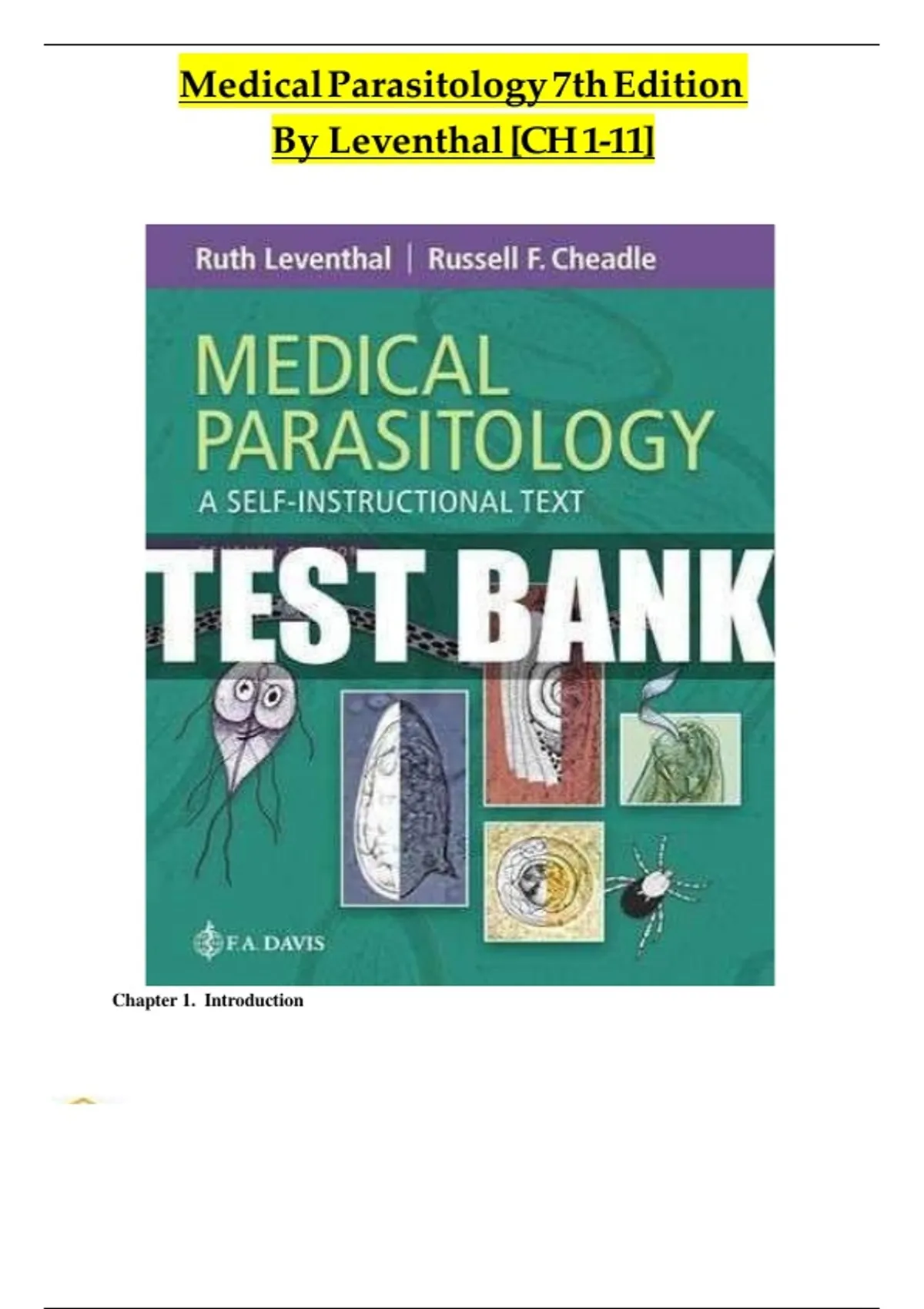 Leventhal: Medical Parasitology, Ed. 7 Multiple Choice Questions - Chapter 1