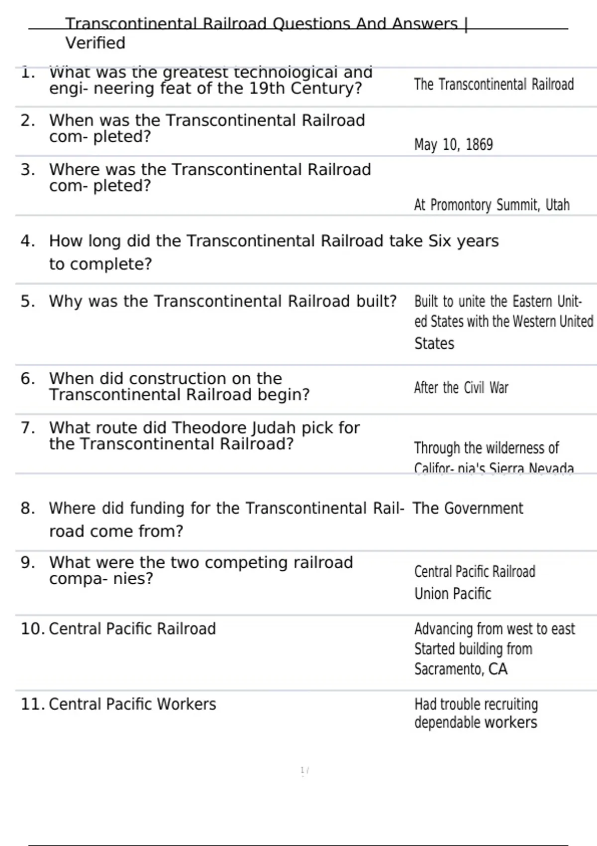 Transcontinental Railroad Questions And Answers |