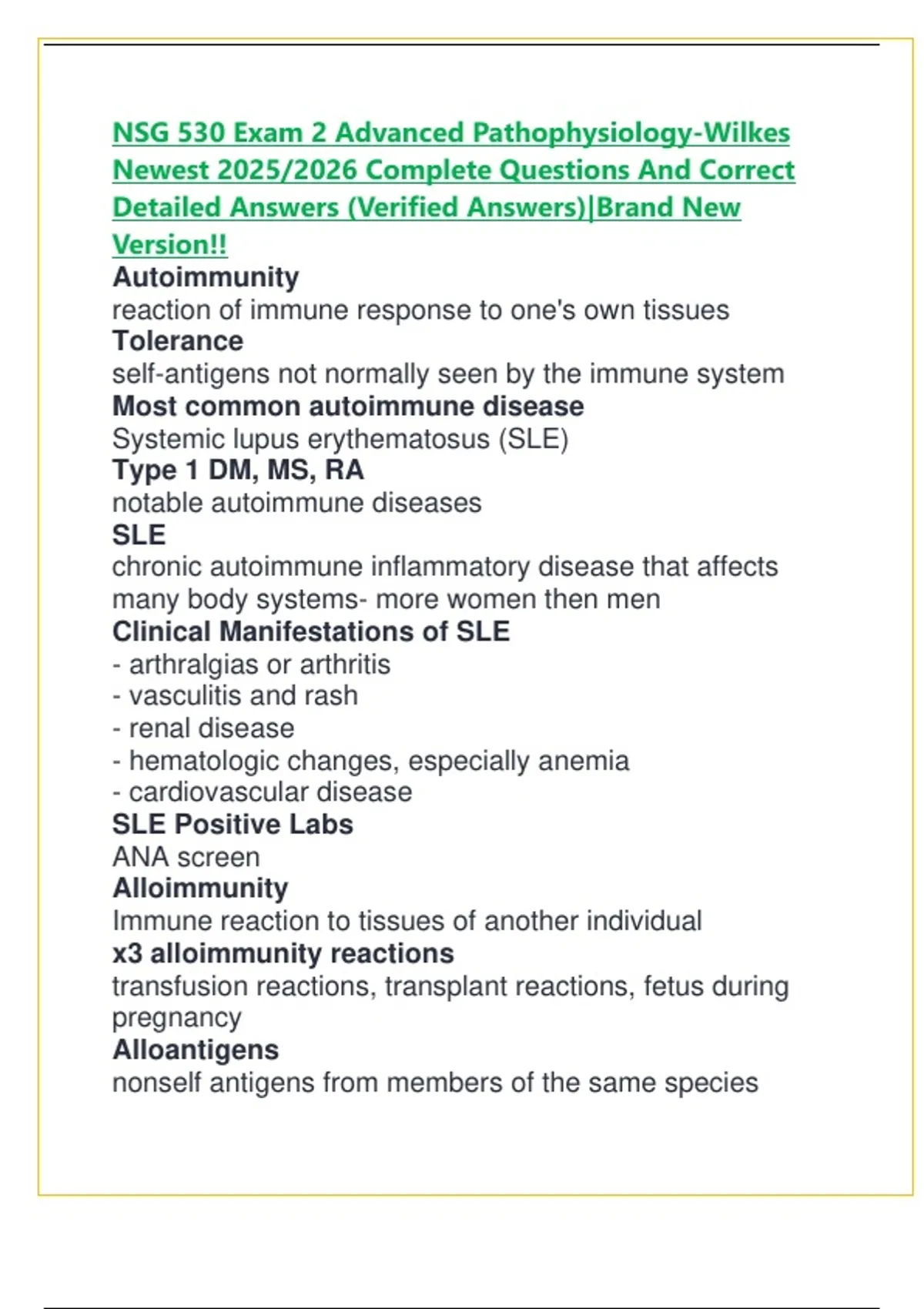 NSG 530 Exam 2 Advanced Pathophysiology-Wilkes